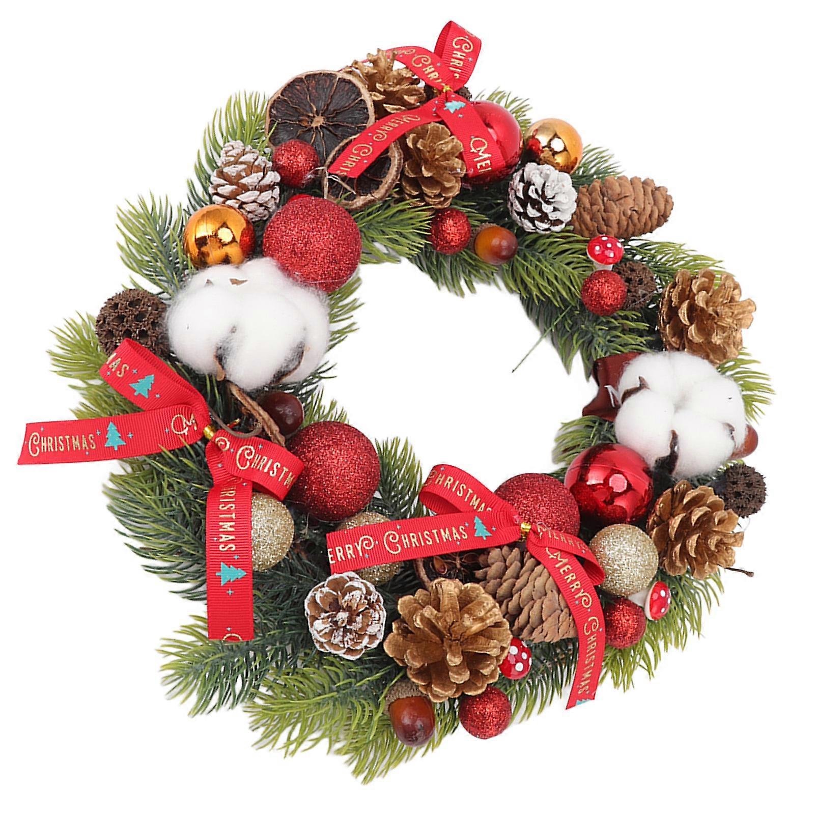 Christmas Pinecone Wreath With Cotton Balls Festival Front Door Hanging Garland For Home Decoration Red