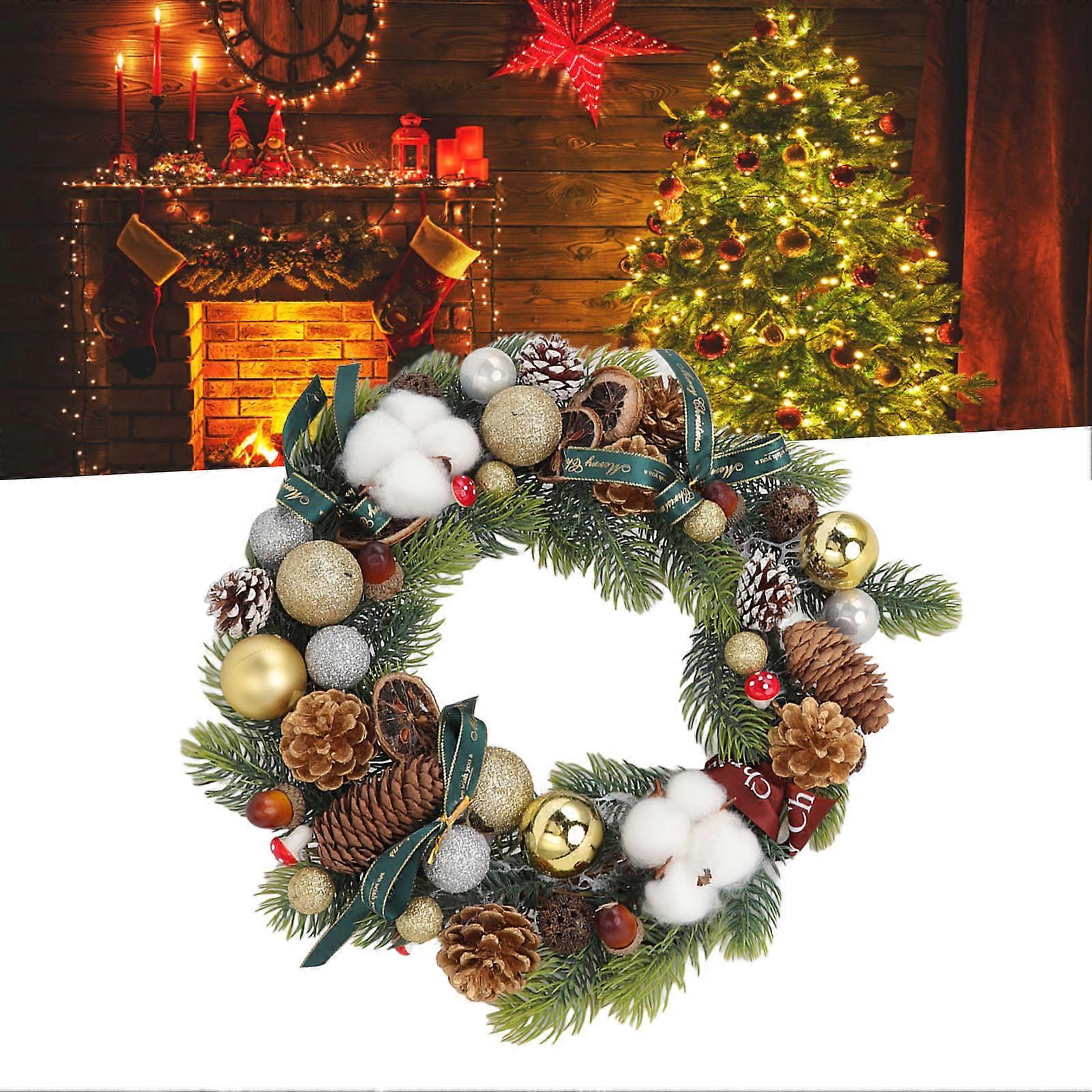 Christmas Pinecone Wreath with Cotton Balls 30x30x10cm Green