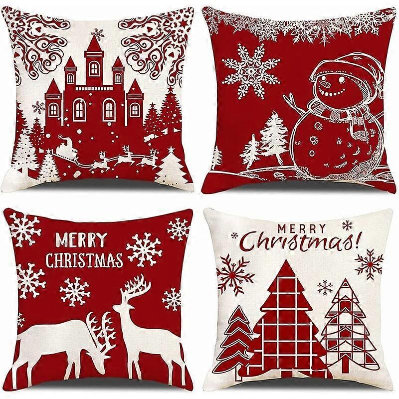 Cotton Linen, Cushion, Christmas Theme, Snowflake Pattern, Decorative Pillow Cover