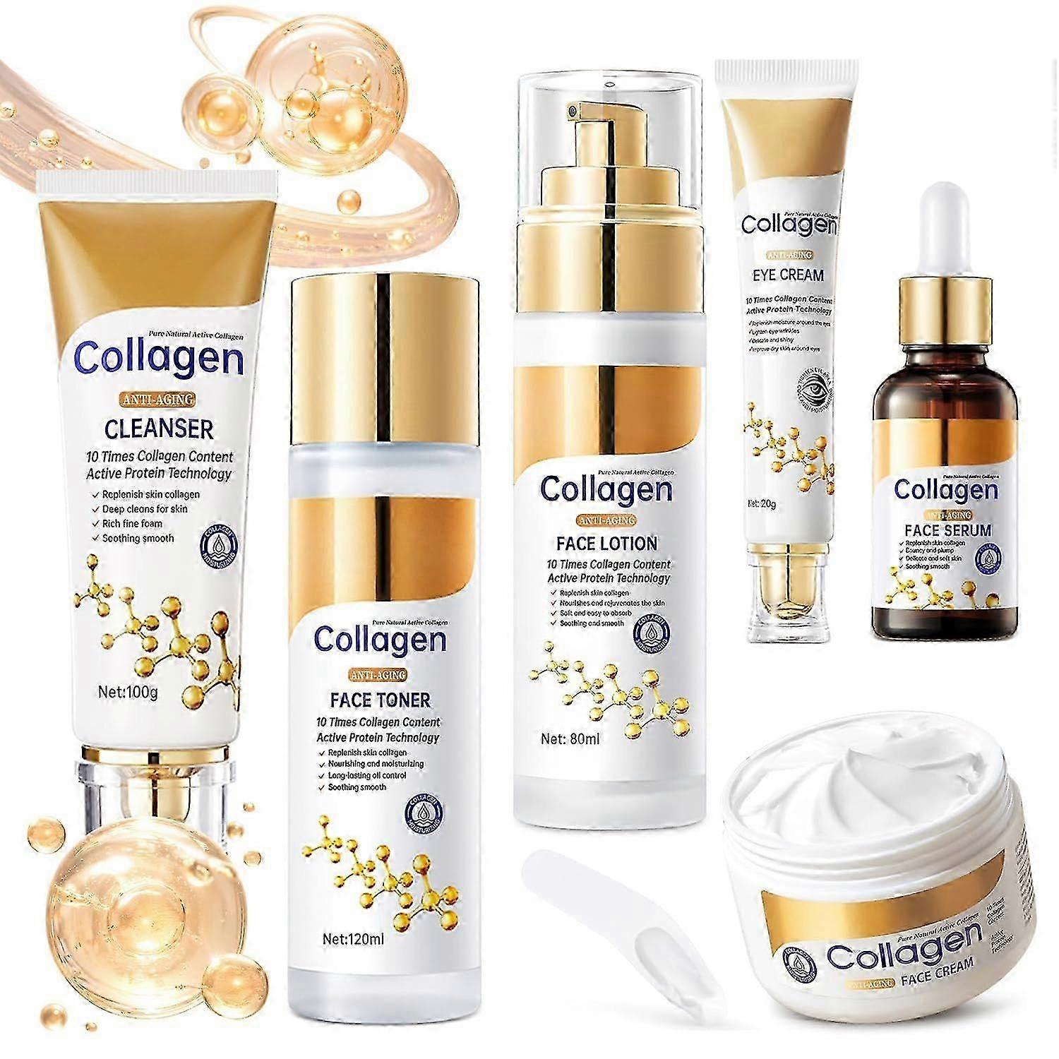 Collagen Skin Care Set, Anti Aging Skincare Set for Face, Shrink Pores, Hydrate & Firm Skin, 6 Pcs Skincare Kits with Cleanser, Toner, Lotion, Serum