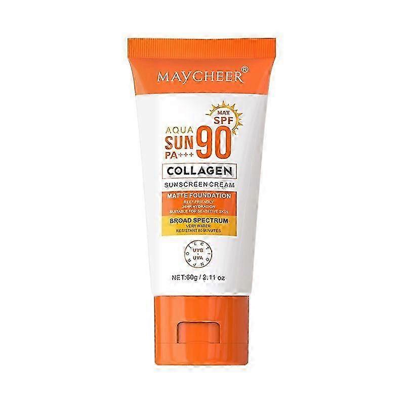 Collagen Sunscreen SPF 90 PA+++, Long Lasting 24-Hr Sun Protection Sunblock Face Moisturiser, UV Ultra High Protection for Outdoor, Waterproof & Non-G