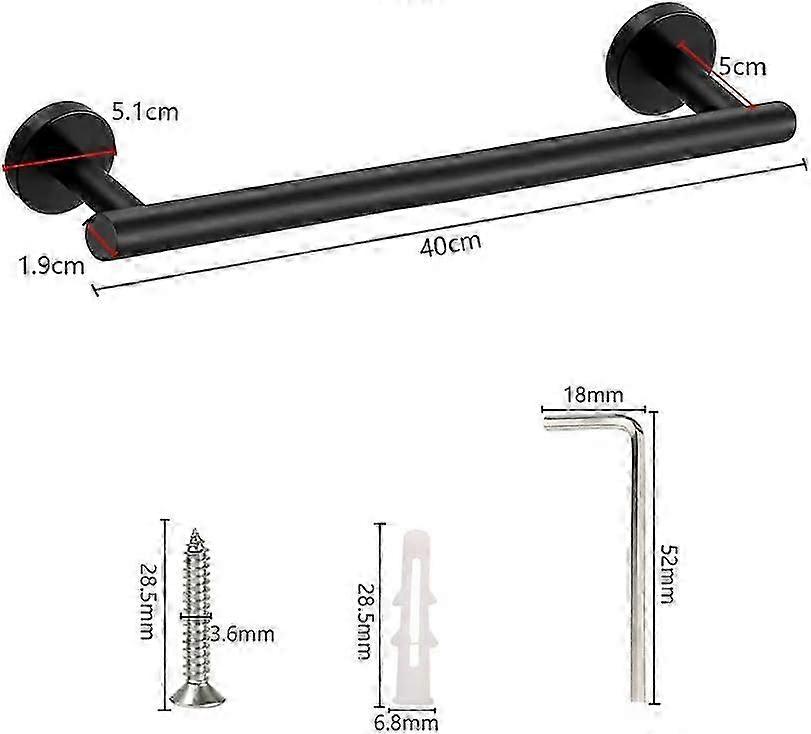 Durable Stainless Steel: Crafted from 304 Stainless Steel for Unmatched Durability and Rust Resistance. Matte Black Finish: Timeless and Elegant, Resists Corrosion and Rust in Humid Environments. Contemporary Style: Simple, Elegant Modern Design Enhances Any Bathroom or Kitchen Décor. Space-Saving Design: Ideal for Small Spaces, Keeping Towels Organized and Within Reach. Easy Installation: Suitable for Various Surfaces Including Tile and Drywall. Elevate your space with our contemporary towel bar, a fusion of durability and style that seamlessly integrates into your bathroom or kitchen. The 304 stainless steel construction ensures longevity and resistance against corrosion, while the matte black finish adds a touch of sophistication. Designed for efficiency, this space-saving accessory provides ample room for towels without overwhelming your area. Installation is straightforward, fitting easily onto multiple surfaces. Experience the blend of practicality and aesthetics today! Note: Due to the light and screen setting difference, the item's color may be slightly different from the pictures. Please allow slight dimension difference due to different manual measurement.