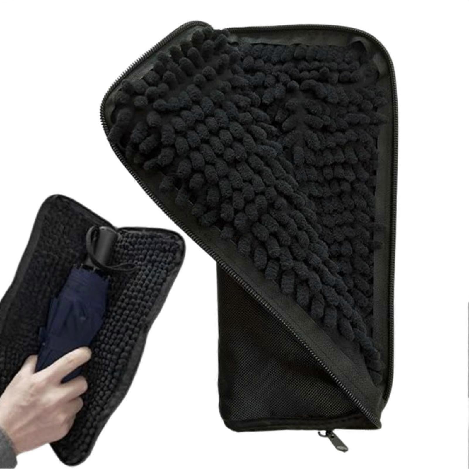 Compact Umbrella Sleeve | Portable Chenille Umbrella Bag | Water-Resistant and Absorbent Black Umbrella Cover for Travel