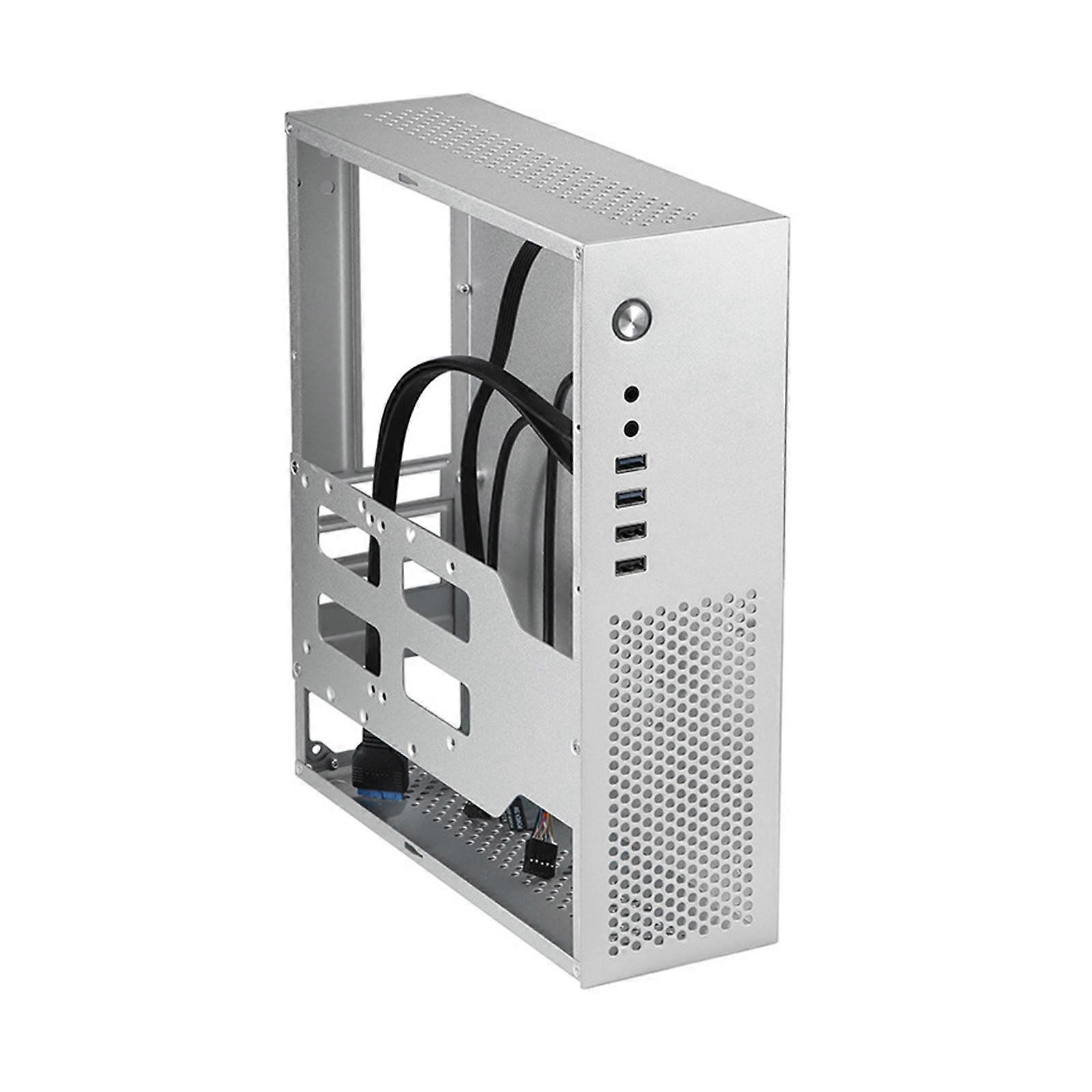 Description: 【Material】This computer case is made of steel material, hard and firm, not easily deformed. 【Mini】Simple, mini, thin and save a lot of desktop space, the case with its small and exquisite. 【USB】With 3 0 USB interface and power switch, which makes it easier to operate. 【Application】This desktop computer case supports horizontal, vertical, wall mounted placement, saving more space for you. 【Feature】The top cover of computer case is also equipped with heat mesh, and the mesh hole position just covers the CPU radiator position. Size Chart: 30.3cmx9.2cmx26.2cm/11.93inchx3.62inchx10.31inch Package Includes: 1 Set Computer Case Note: Please allow slightly errors due to manual measurement and different monitors.