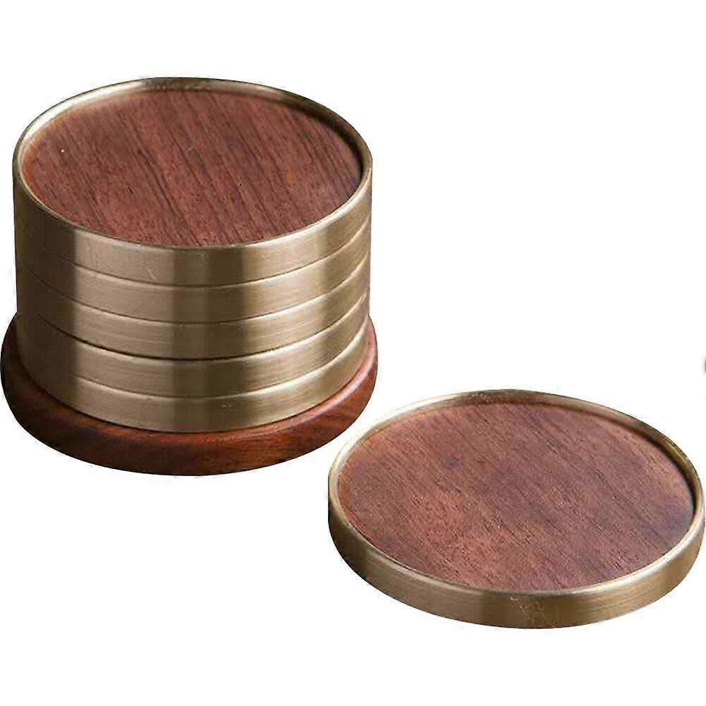 Coasters - Solid Wood Heat Resistant Coaster Set, Round Copper Wood Design for Tea and Household Use (Style 2)