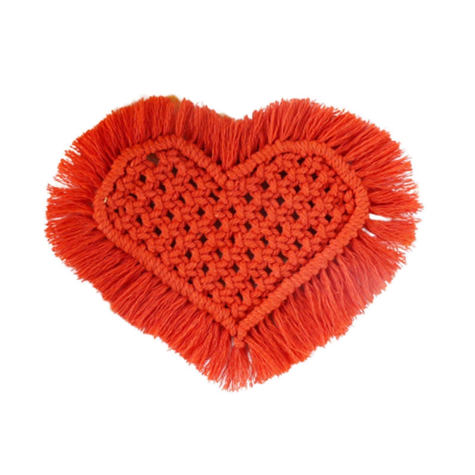 Coaster eco-friendly heart-shaped cotton rope hand-insulated coaster household (red) 1 piece