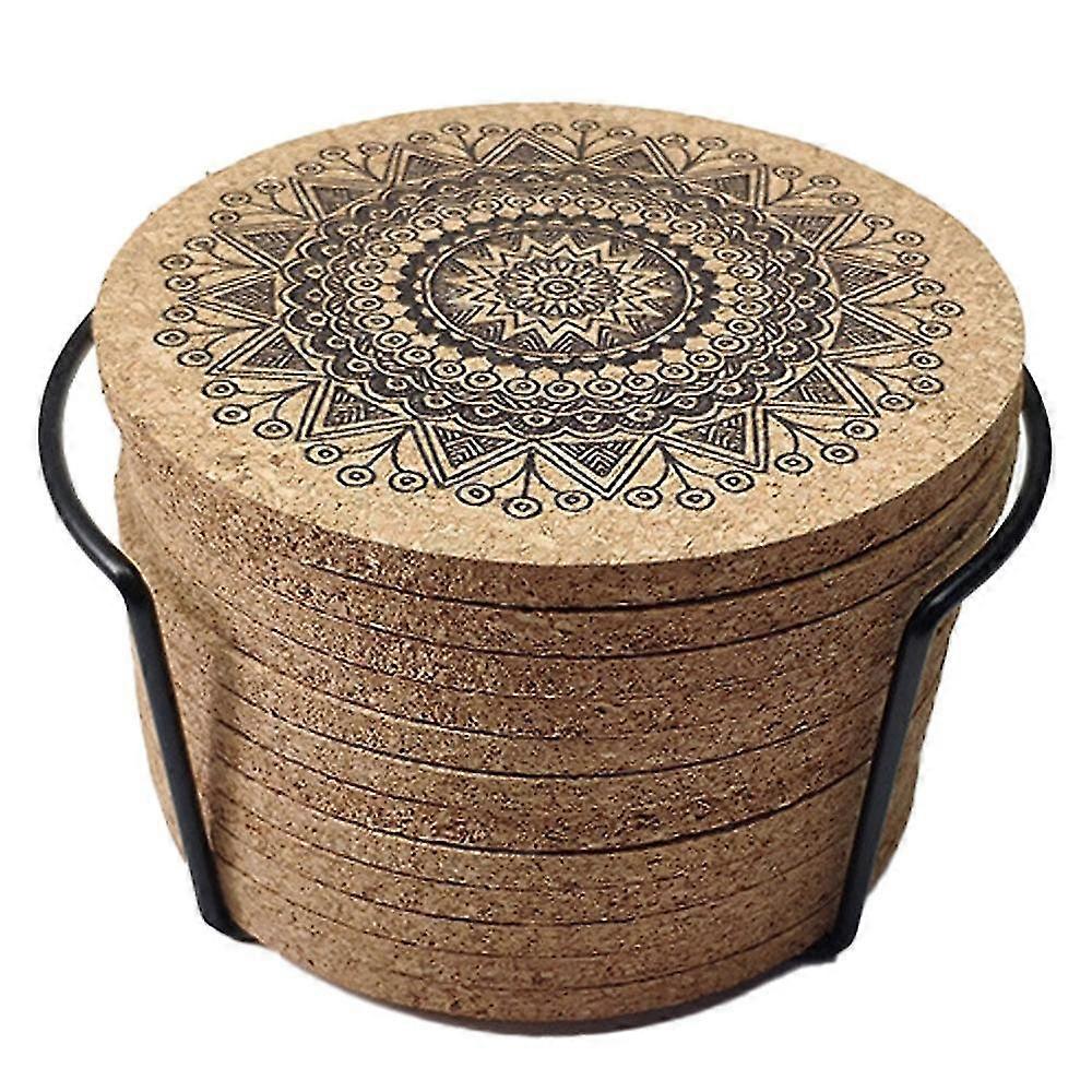 12 coasters Reusable absorbent coasters, cork coasters drink absorbent, comes with metal holder.