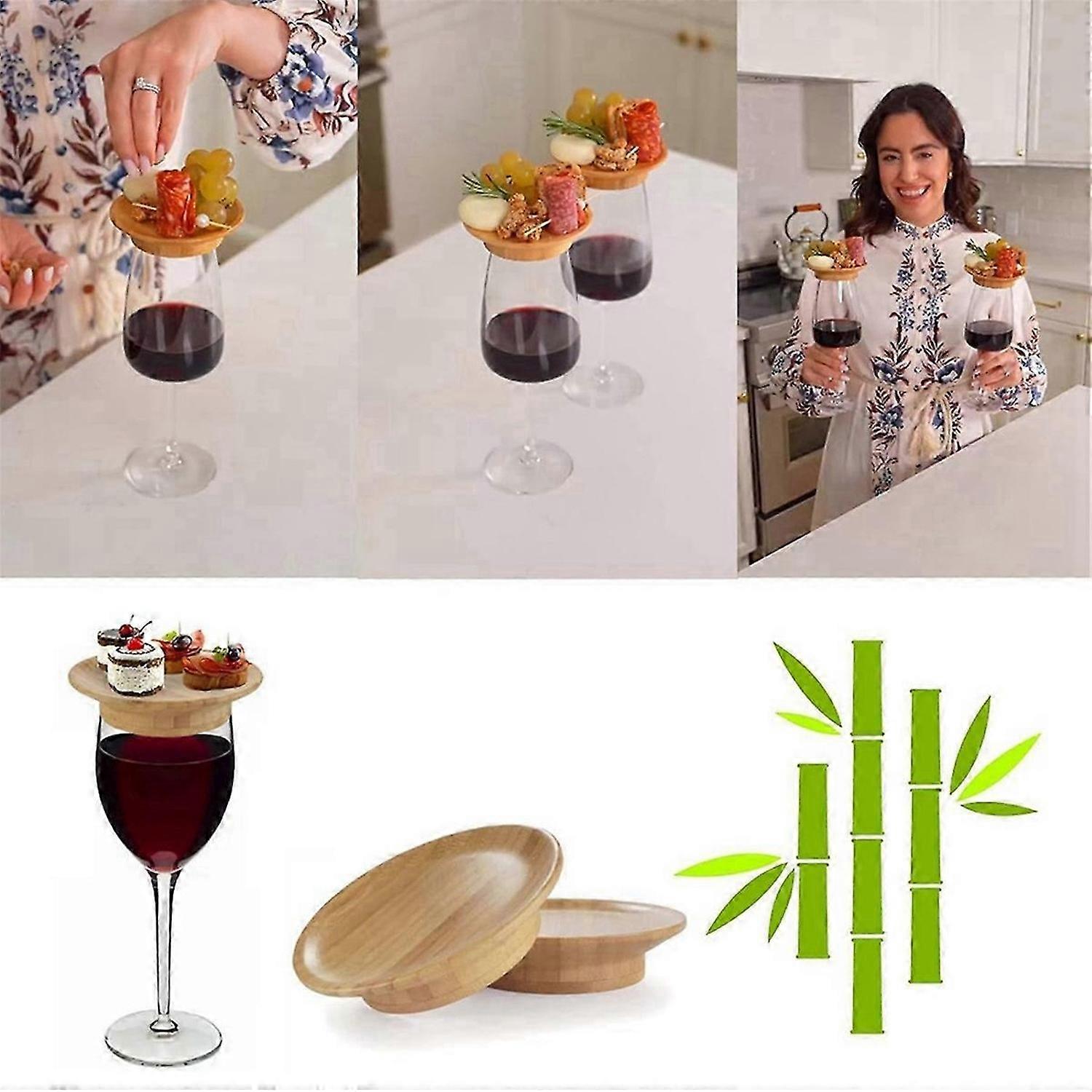 Coasters Set of 4 Wine Glass Topper,Bamboo Wine Glass Topper Coasters