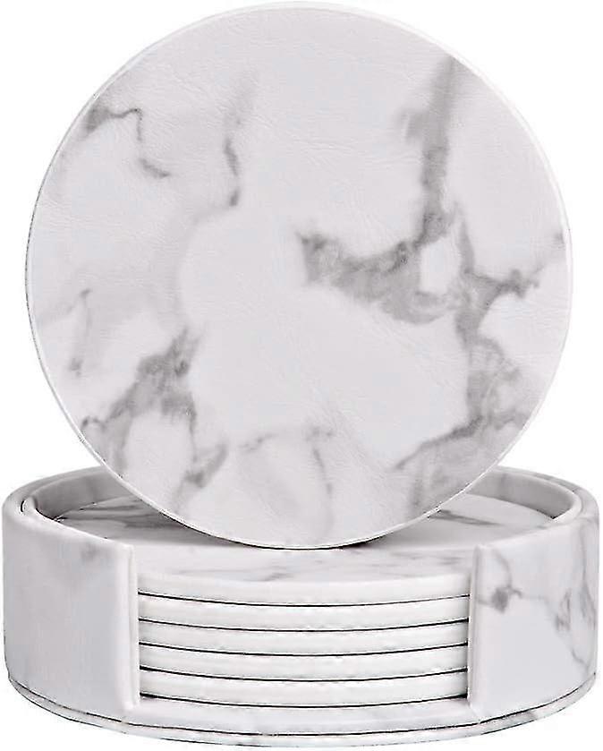 Coasters PU Leather Coasters, 6Pcs/Set Round Natural Marble Coasters, Waterproof Cup Mats Non-Slip Pads for Drinks Tea Coffee Cup Mug Glass, Kitchen and Office Use