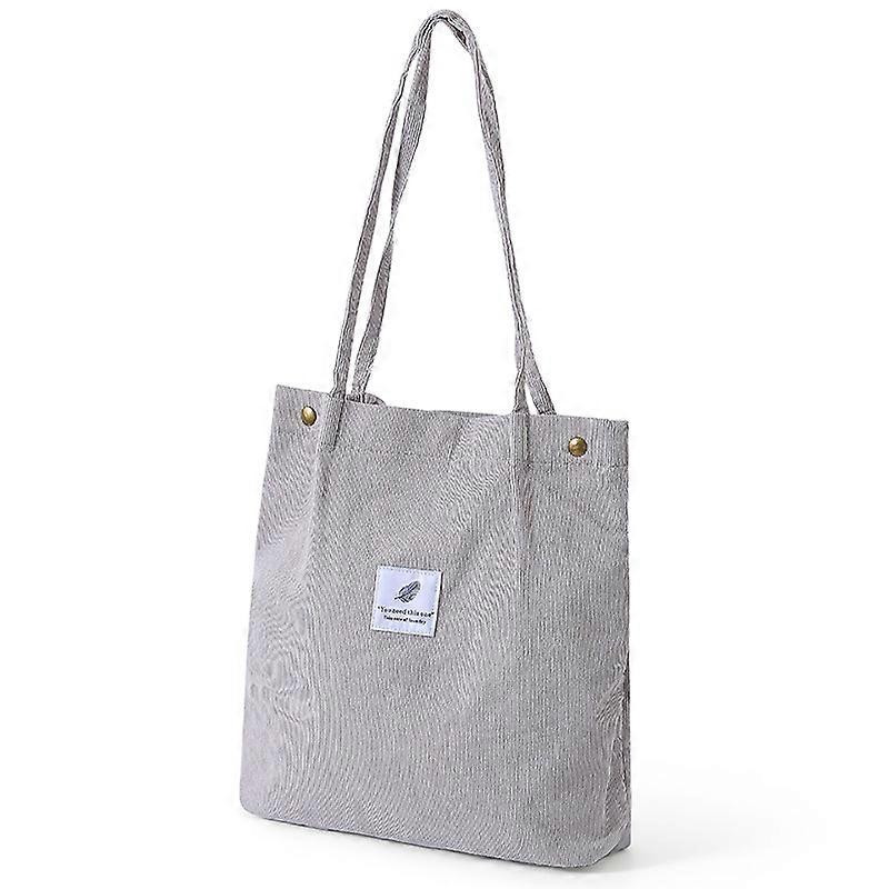Corduroy Tote Bag for Women Girls Large Reusable Carry Shoulder Bag with Inner Pocket -Grey