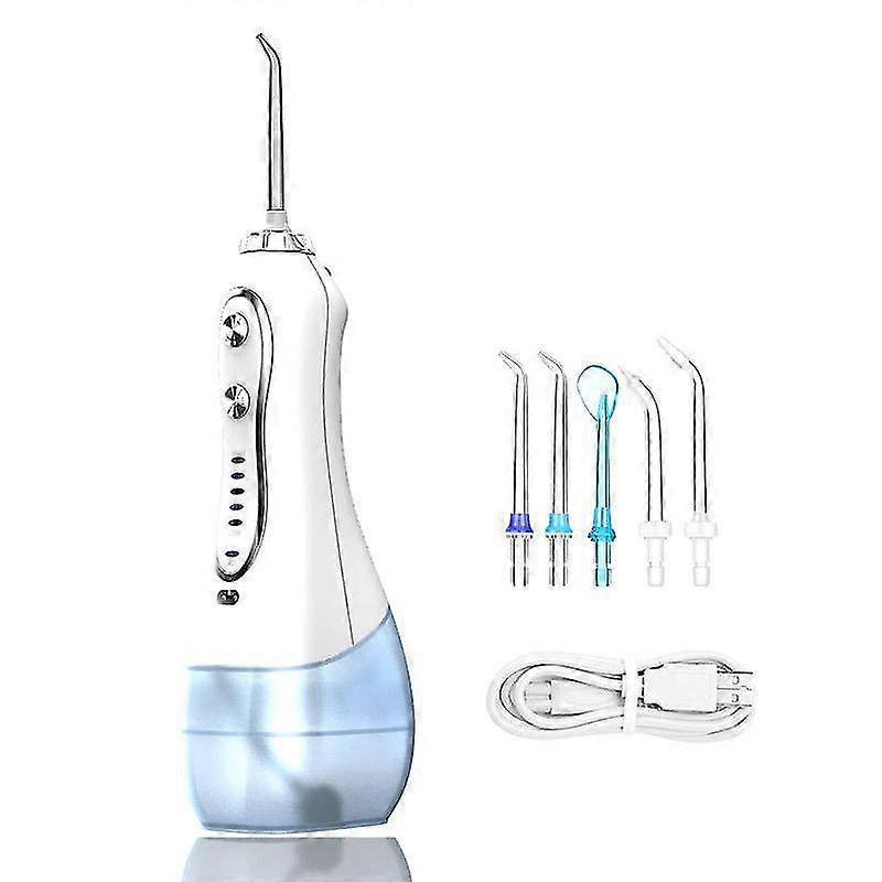 Welcome to our store! DEEPLY CLEAN TEETH & IMPROVE GUM HEALTH: With upgraded unique pulsation technique, the oral irrigator can offer high-pressure water pulse 1400-1800 times/min, 30-110PSI strong water pressure to remove hidden oral deep, effectively massage the gum and promote blood circulation. Also helpful for bleeding gums, bad breath, beneficial for brace, bridge care and orthodontics SUITABLE FOR VARIOUS CONDITIONS OF TEETH & GUMS: Cleaning - With 1800 times/minute strong water pulses to remove smaller particles. Soft - Offering gentle 1400 times/minute pressure to clean sensitive teeth. Massage - With 1400~1800 times/minute to clean your teeth and stimulate and massage the gums. Please choose soft mode when you use dental flosser at the first time PORTABLE SIZE: Cordless & lightweight, this water teeth cleaner is perfect for travel, 5 interchangeable nozzles included for your whole family. The 360°rotatable nozzle allows you to easily clean areas that are difficult to reach and prevents debris and dental plaque problems POWERFUL BATTERY LIFE & IPX7 WATERPROOF: With powerful and environmental lithium battery, full charging needs 4 hours and used continuously for about 21 days. Come with USB cable (Adapter Not Included), applicable to a variety of charging equipements such as power bank, computer, laptop.... With double sealing rings, oral irrigator prevent water leakage reliably, can use for shower in the bathroom and is washable to clean Satisfaction: Our customers are our top priority. If you find any product problems after receiving the product, such as damage, incorrect quantity of goods, please contact the seller immediately, we will do our best to provide you with satisfactory after-sales service.