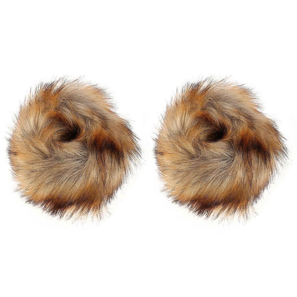 Coat Arm Extension Faux Arm Warmers Furry Wrist Cuff Warmer Band Light Brown Elastic 1Pair