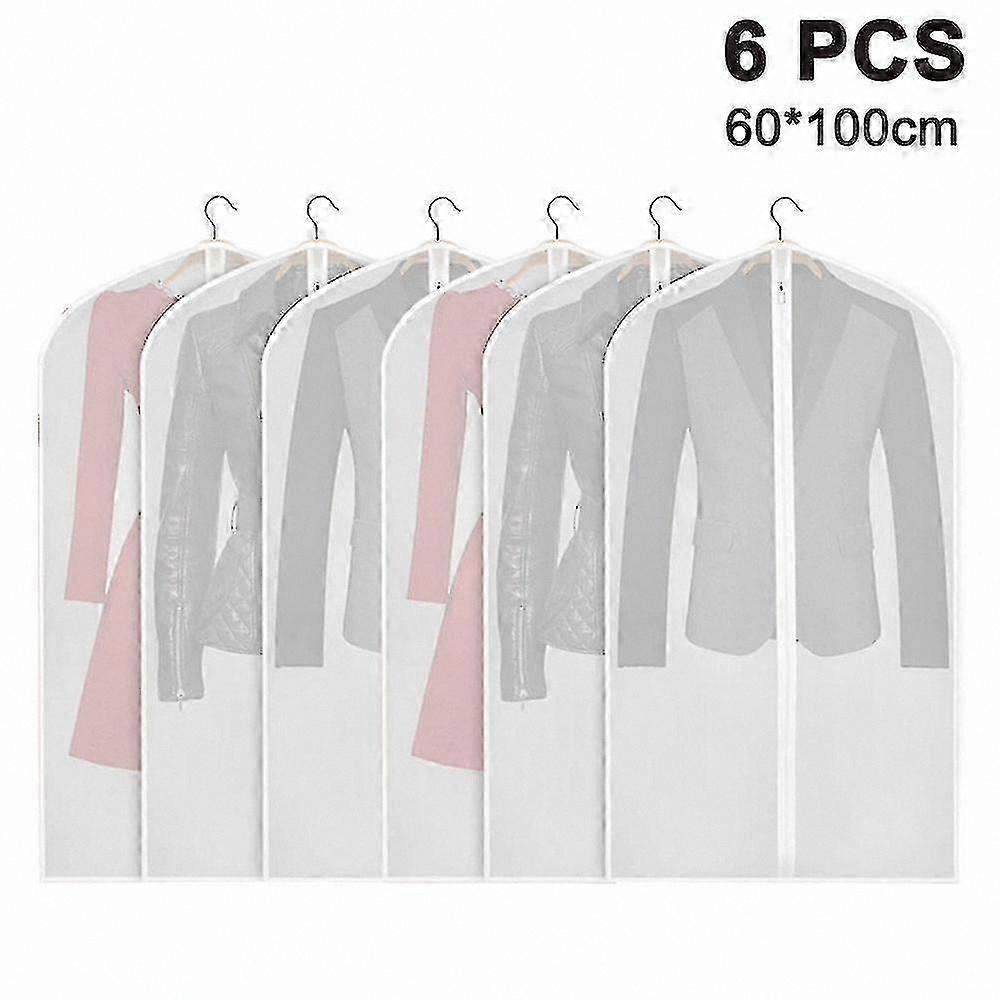 6-Pack Garment Bags with Transparent Covers for Dust and Moth Protection of Coats Suits Dresses