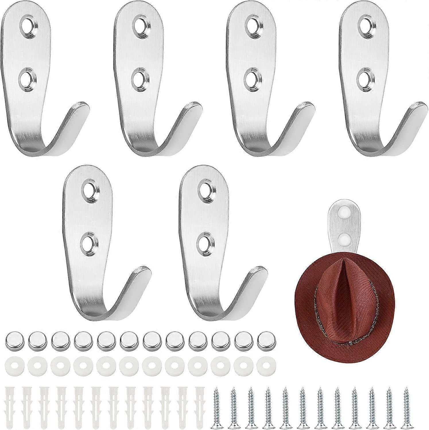 Coat hook wall mounted hat hook robe hook brushed stainless steel J hook heavy duty wall hanging for bedroom kitchen bathroom door (silver) (6pcs)