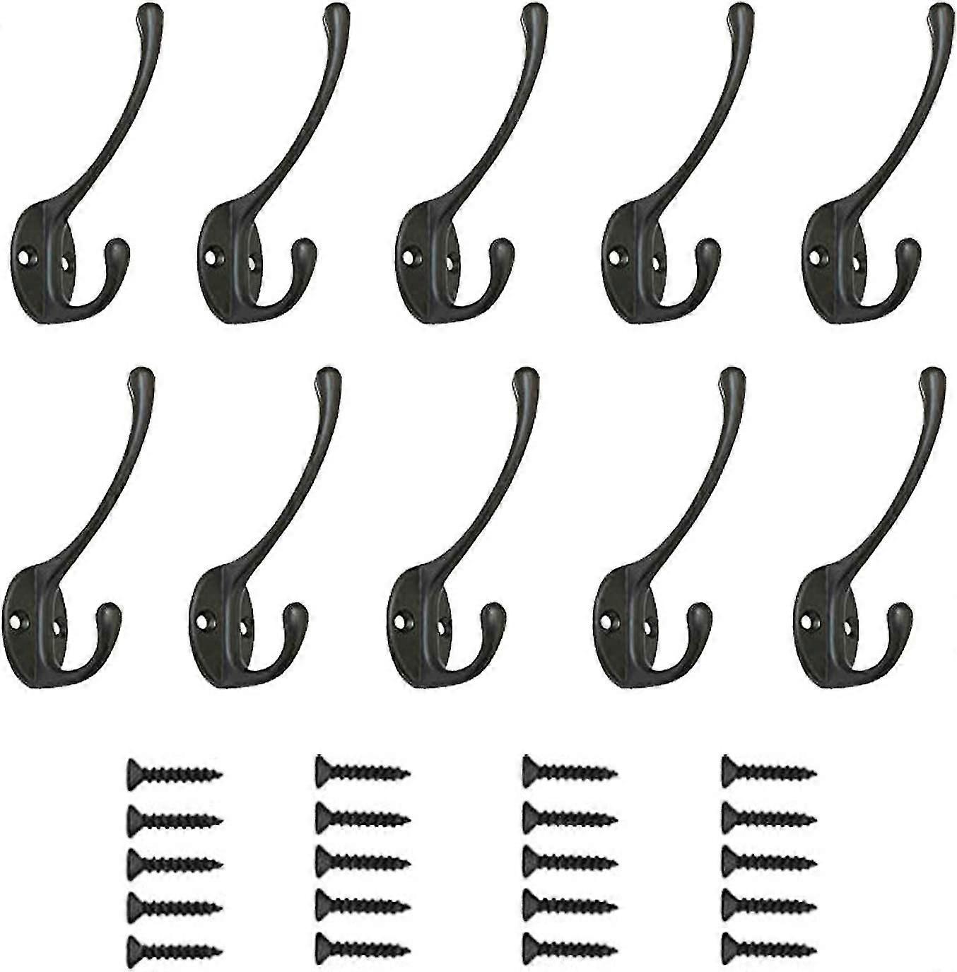 Coat Hook, 10 Pieces Large Double Fasteners Metal Robe Hook Cloth Hanging With Screws, Black