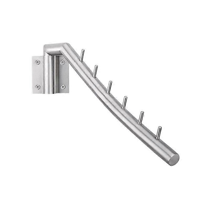 Coat Hook Bar Stainless Steel Wall Hook Grid, Swing 180, 6 Hangers Fences for Organizing Clothes, Towels etc. and save space in wardrobes, bedrooms an