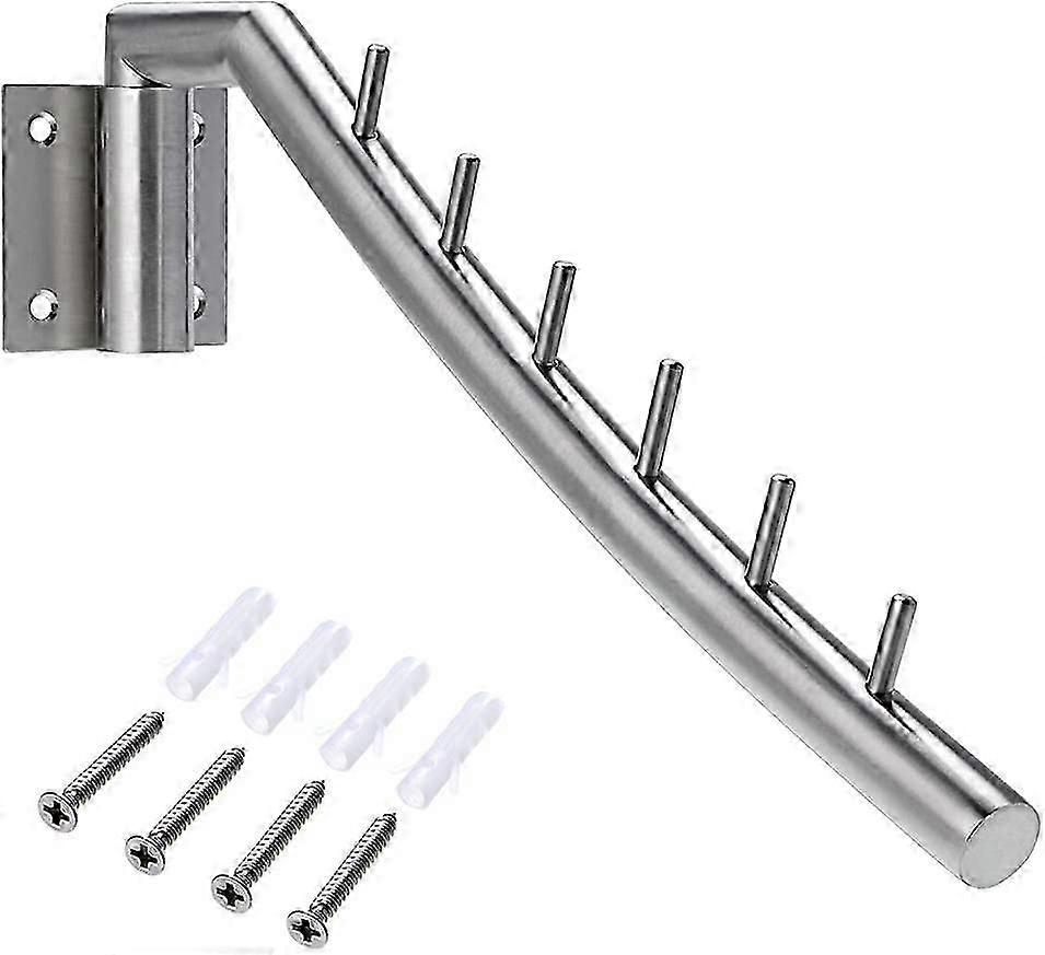 Coat Hook Bar Wall Mounted Stainless Steel Hook, Swing 180, 6 Closing Hangers to Organize Clothes, Towel etc. and save space