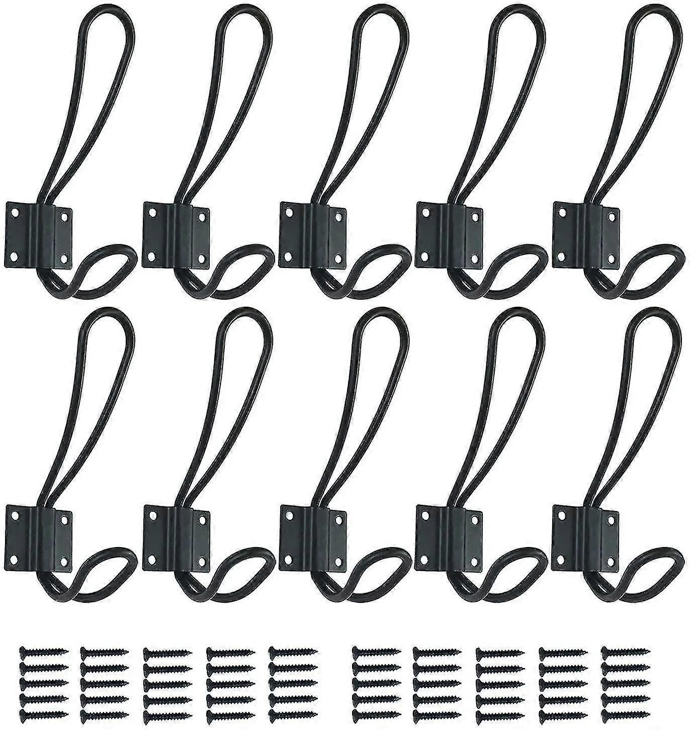 Coat Hooks 10 Pieces Large Double Clips Coat Hook Metal Screws For Door Hooks Door Kitchen Room Coat Hook, Black