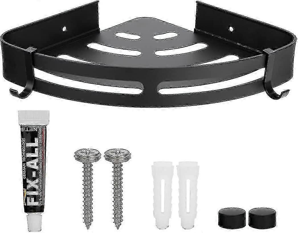 Space Aluminum Corner Bracket Shower shelf corner shelf is made of Space aluminum, hand-polished, anodized, anti-rust and anti-scratch, corrosion resistant and durable. Comes with 2 hooks, perfect practical equipment for your bathroom. Sophisticated design Matte aluminum and black primer, it can be well matched with different interior styles.The shower shelf corner shower basket can prevent water from remaining on the shelf after the shower, make it dry and clean, keep it the items on the shelf breed bacteria. 2 installation methods We have set up 2 installation methods for you. 1. You can use self-adhesive glue. 2. Drill and install.You can choose according to your home situation and choose different methods installation for different walls. Product size Bathroom shelf storage organizer size is 30cm x 22cm x 4cm, come with 2 hooks, you can store shampoos, lotion, shower gels, conditioner, soap and facial cleanser. The two hanging loops at the bottom can hang towels or bath balls etc. Easy to disassemble Special care should be taken during installation. The corner shelf of the shower shelf should be fixed with auxiliary stickers for 48 hours, in this way the load capacity can cover the weight of all your bathroom products, if you need to remove it, use a hair dryer to dry the self-adhesive material and it can be removed. Do you want to have a neat and beautiful bathroom Corner shower shelf is your best choice, is the first choice for every family bathroom, kitchen accessory. Features: Product weight: 250g Product dimensions: 24 * 23 * 4.6cm Material: aluminum Scope of delivery: 1 x corner shower shelf 2 x screws 1 x sticker PROPERTIES -Material: Our shower basket is made of space aluminum, will not rust or corrode. -Outside: Our products have been polished several times, smooth and flat, with rounded corners and will not cut your hands. -Steps to use: 1. Clean the dust off the wall with a cloth. 2. Spread the glue evenly over the corner shower shelf. 3. Press firmly and secure with auxiliary stickers. 4.You can use it after waiting 48 hours. Warm tips: 1.Please understand that there may be 1cm error between manually measured size and actual size. Unit: 1 cm (cm),C