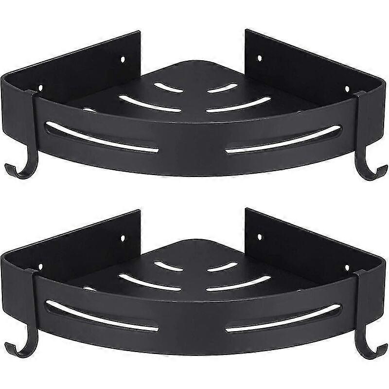 Corner Shower Shelf Black No Drilling Bathroom Storage Shower Bathroom Accessory Shower Soap Holder No Rust Aluminum Set Of 2 With Hooks
