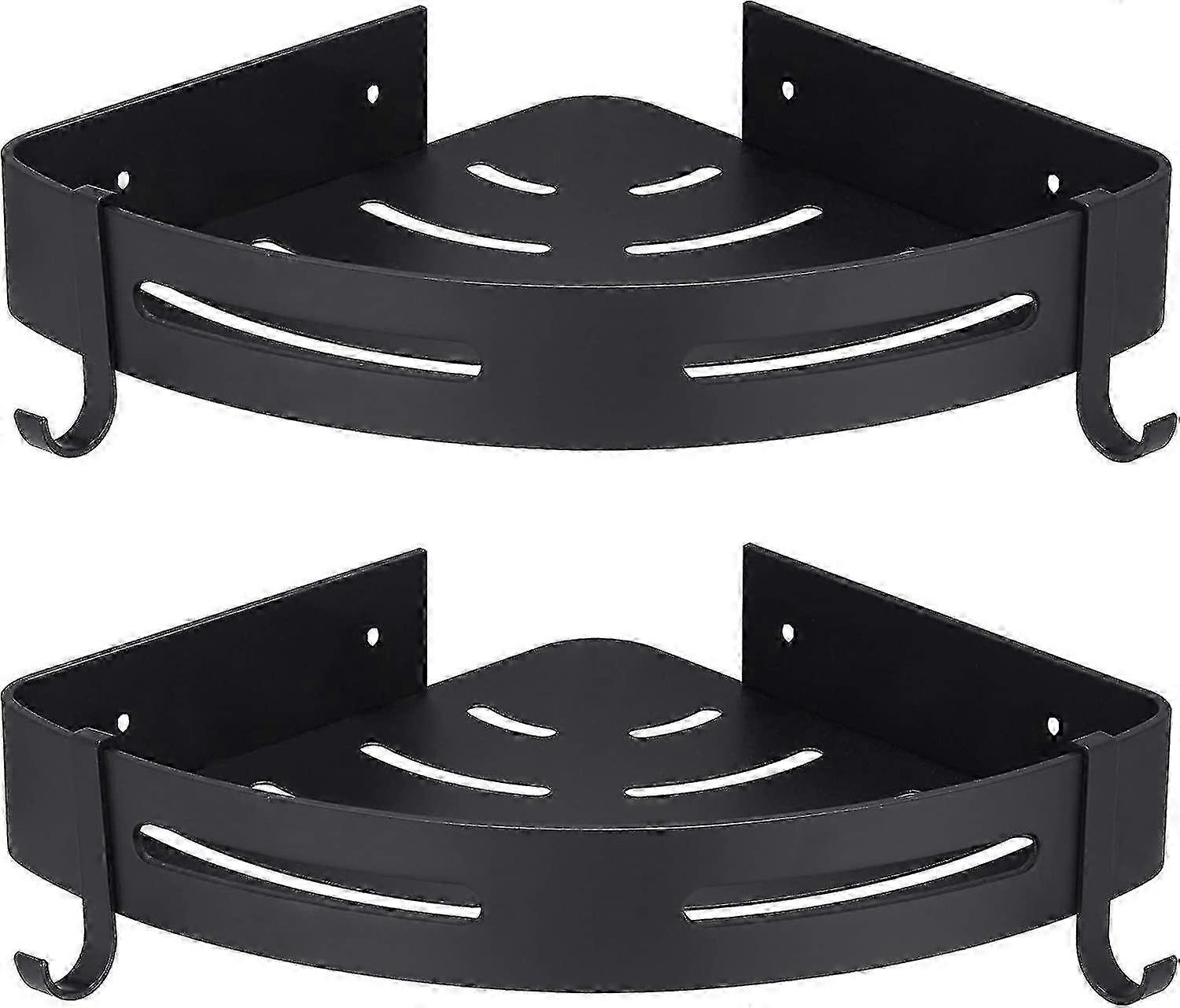 Corner Shower Shelf Black No-Drill Bathroom Storage Soap Holder 2-Pack Rust-Proof Aluminum with Hooks