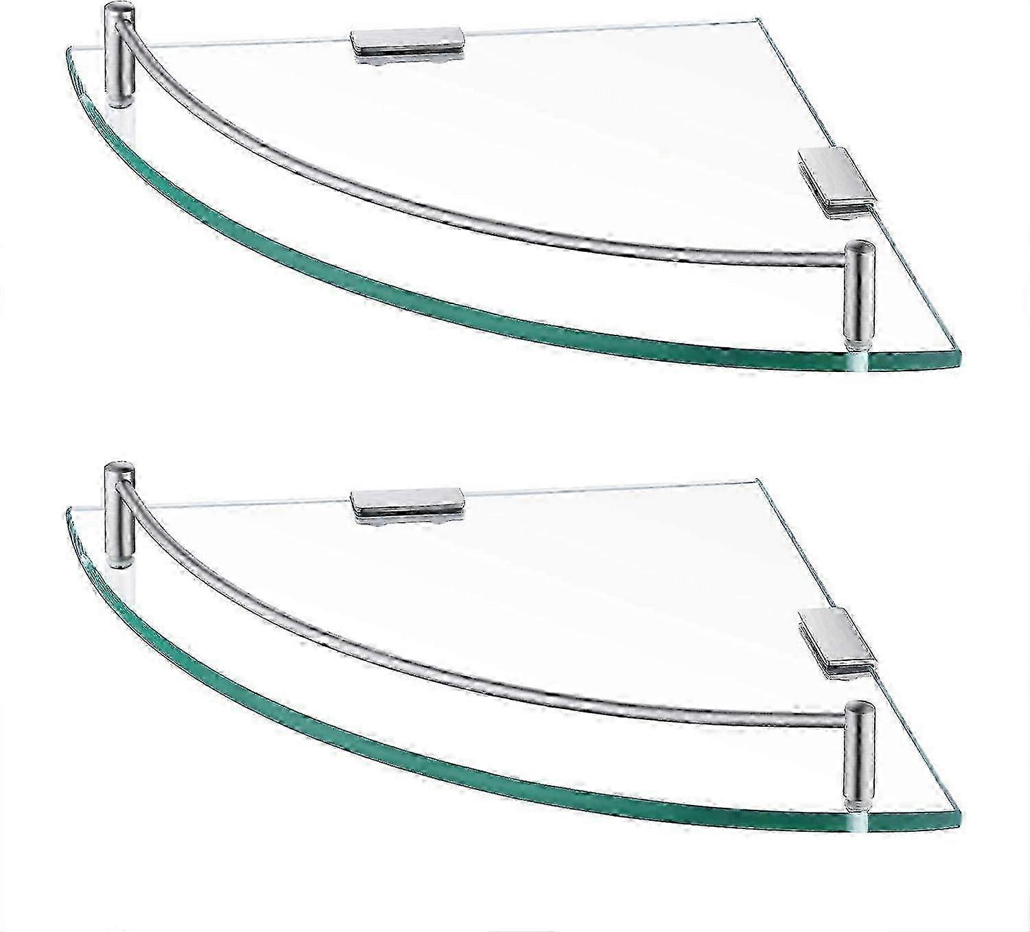 Corner Shower Shelf 2 Pack, Tempered Glass & SUS 304 Stainless Steel, Wall Mounted, Brushed Surface