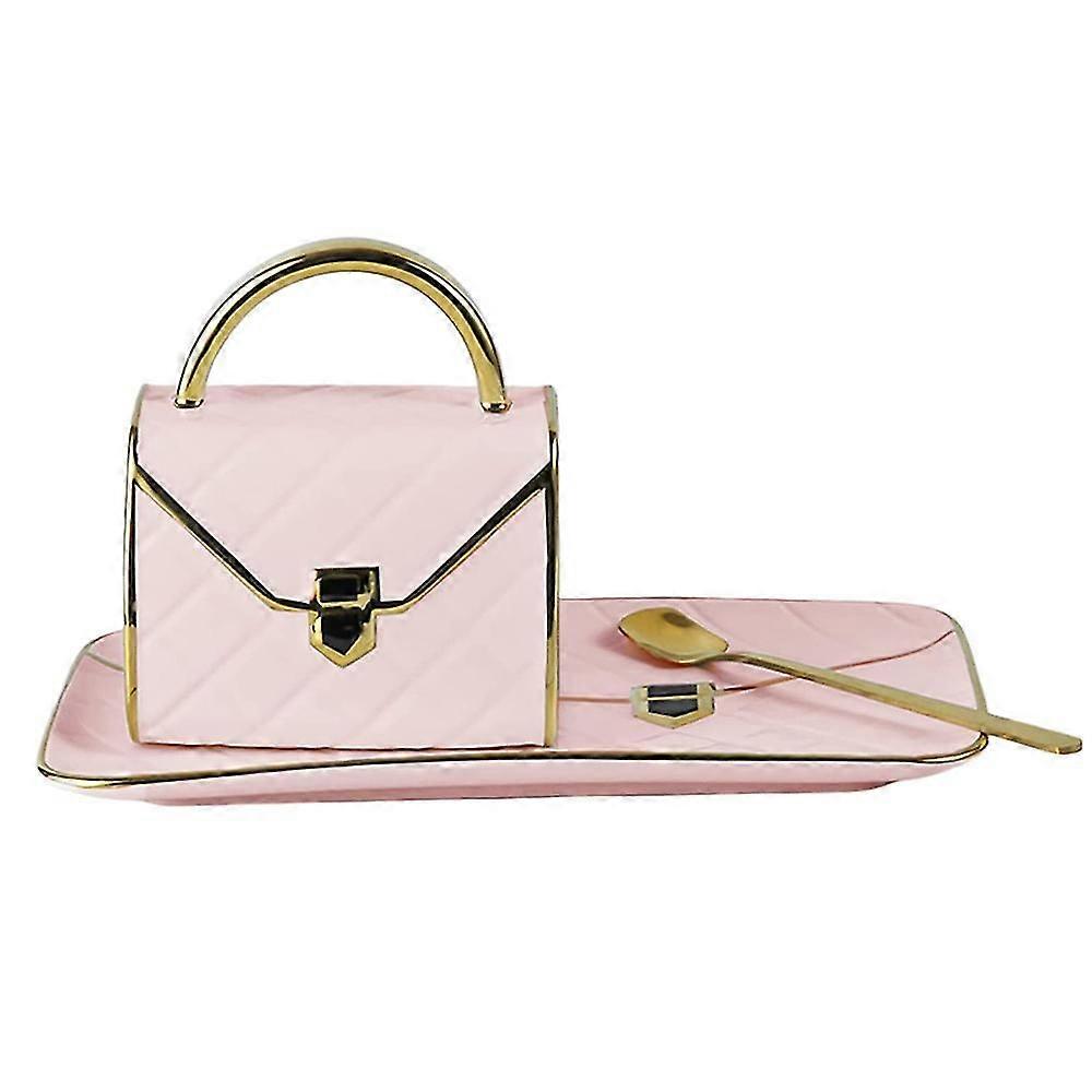 Handbag-shaped Creative Ceramic Mug With Saucer Porcelain Tray Spoon For Coffee, Hot Chocolate, Cappuccino, And Latte Breakfast Anvirtue,1397