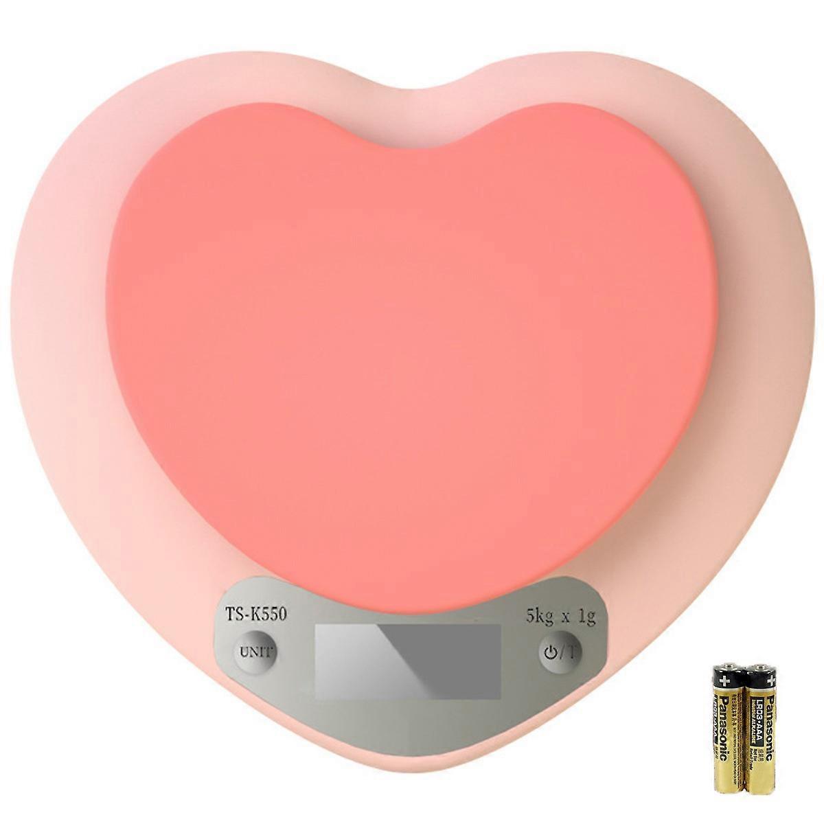 Heart-Shaped Design: The cute and stylish heart-shaped design adds a touch of fun to your kitchen. Perfect for coffee lovers and foodies. Portable: This compact and lightweight electronic food scale is easy to carry and store, making it ideal for home use and on-the-go cooking and baking. High Accuracy: Equipped with high-precision sensors, this digital kitchen scale provides accurate measurements every time. Easy to Use: Simply press the ON/OFF button to turn on the scale. The large LCD display is easy to read and features a backlit function for low-light conditions. Description: Looking for a stylish and convenient kitchen scale that can help you measure your coffee and food accurately? Look no further than this rechargeable digital kitchen scale! Featuring a heart-shaped design, this cute and functional kitchen scale is perfect for coffee lovers and foodies. It's also incredibly portable and easy to use, making it ideal for home use and on-the-go cooking and baking. Whether you're measuring coffee beans, flour, sugar, or other dry and liquid ingredients, this digital kitchen scale is an essential tool for precise and consistent measurements. And with its cute and stylish heart-shaped design, it's sure to become a beloved accessory in your kitchen. Order yours today and start measuring with love! Weight: 180g (gross weight) Color: pink Material: ABS plastic Quantity: 1pc household small love kitchen electronic scale (with battery) Style: 1g/5kg battery, 0.1g/3kg battery