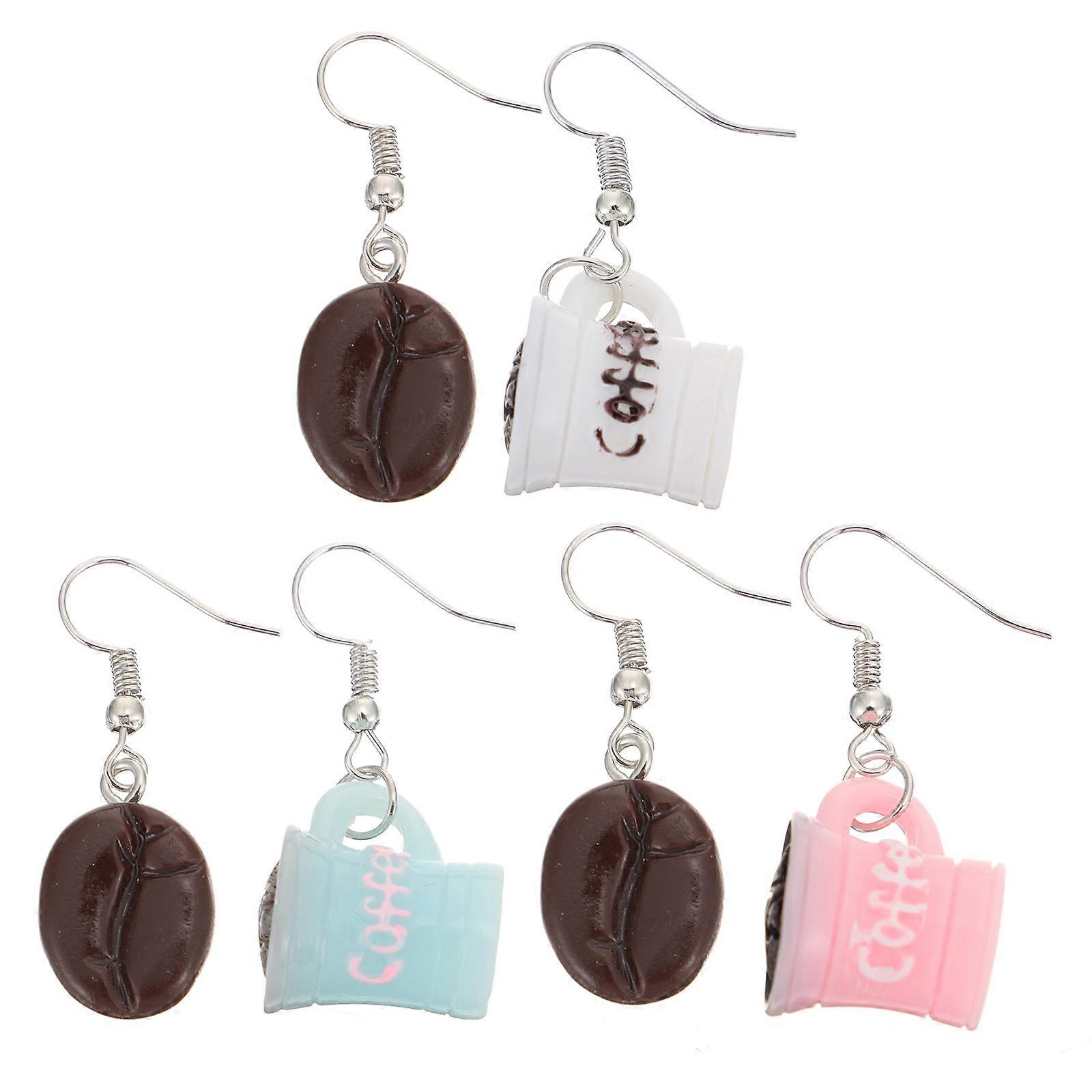 Assorted Color Earrings for Women Decorated with Coffee Cup and Made of Plastic 3 Pairs