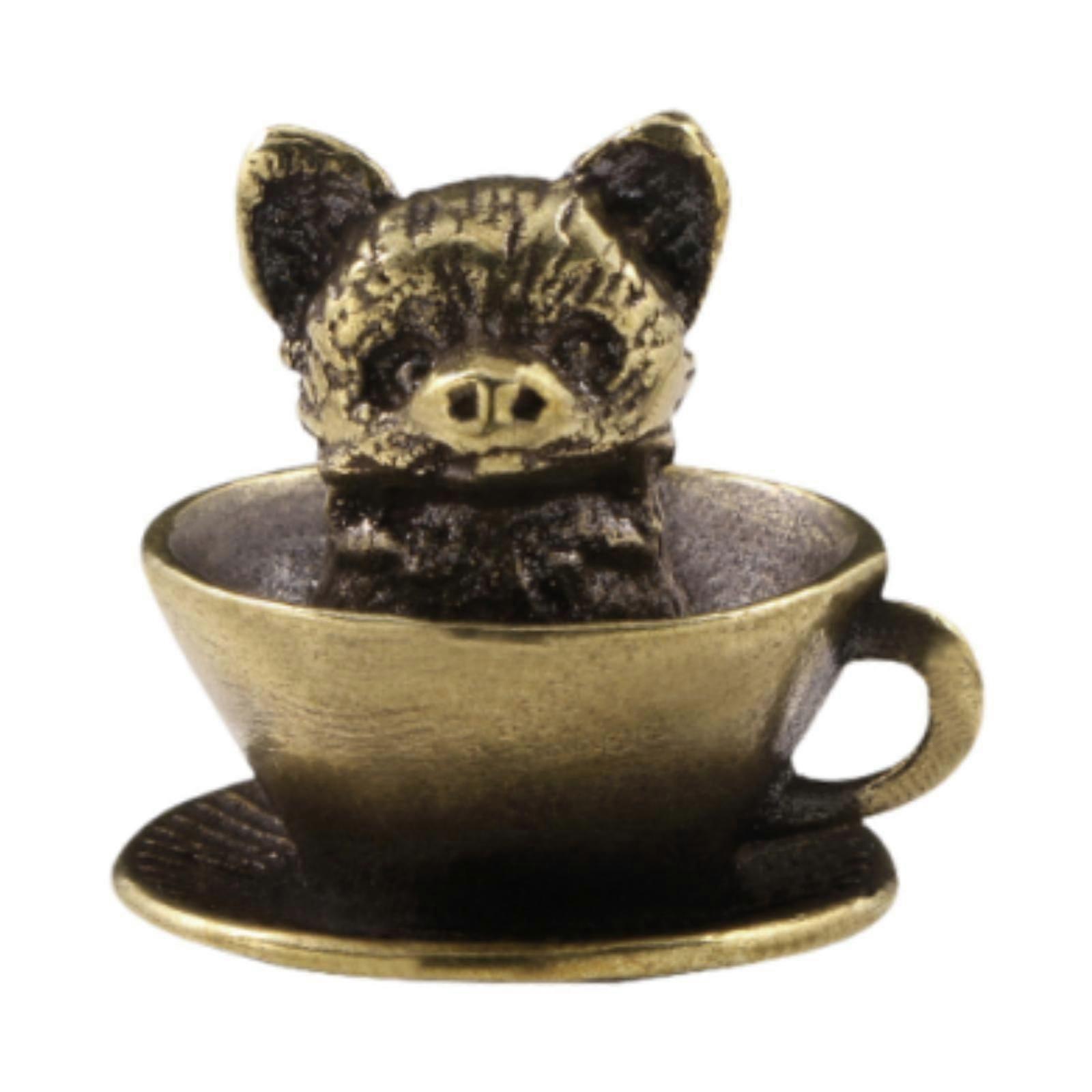 Coffee Cup Pet Sculpture Antique Crafts Copper Pendant for Table Office Home Coffee Cup Cat