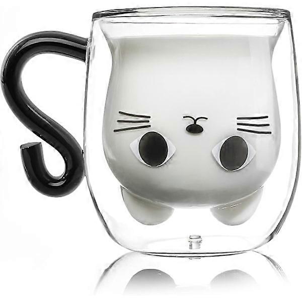 Coffee Cup Cat Mug, Double Wall Glass, Original Christmas Gift for Woman Girl Wife Mom Lover Nann