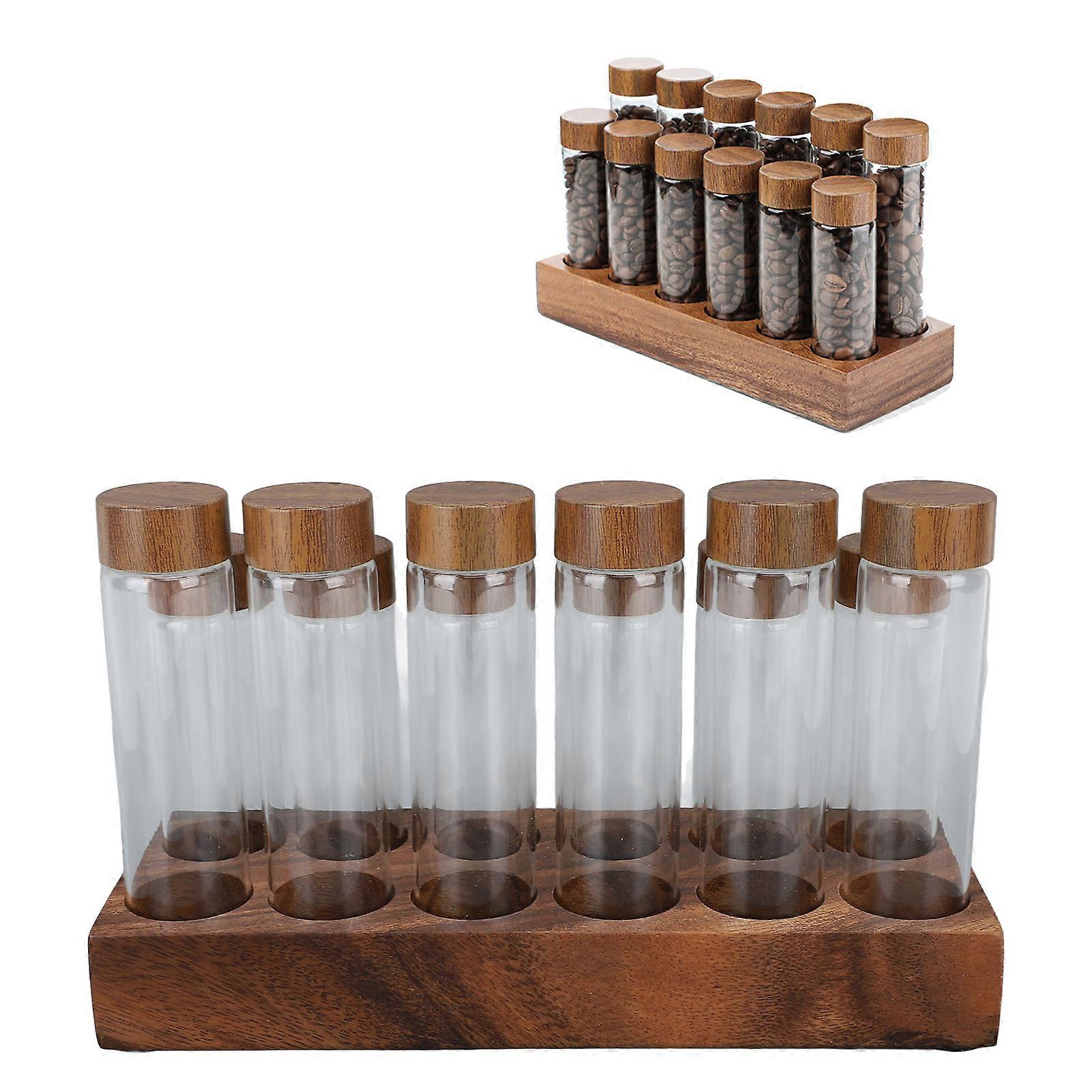 Coffee Sugar Canister Set with Walnut Shelf & Glass Jars 715g