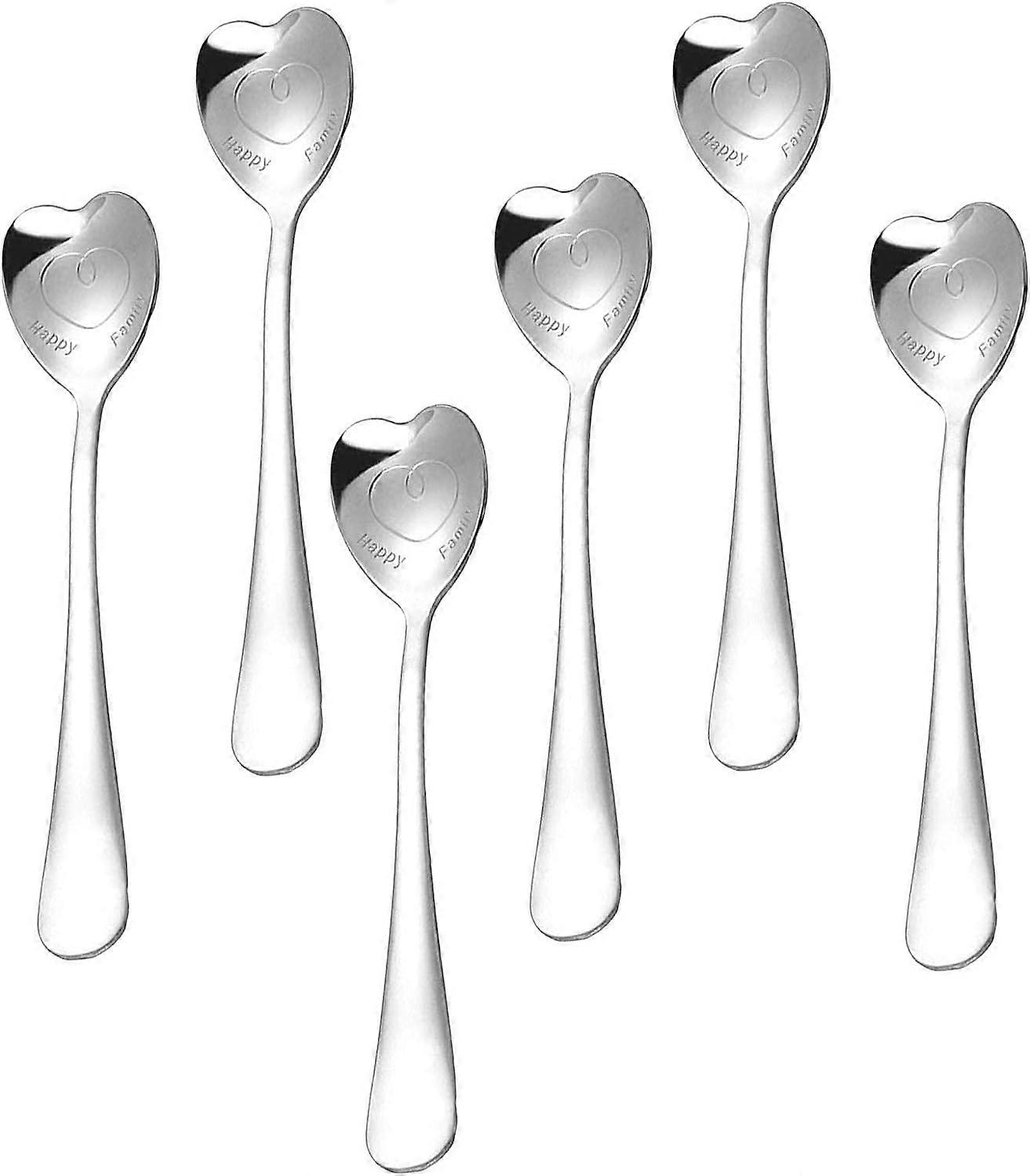 Heart-shaped spoon head with "Happy Family" engraved on it.