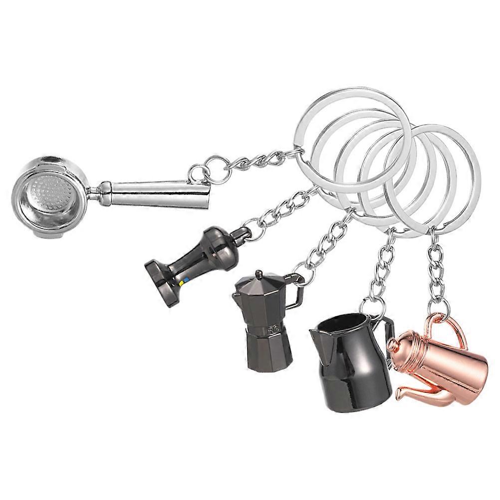 Coffee Tool Keyring Decor Cute Coffee Pitcher Keychain with 5Pcs Zinc Alloy Ornaments