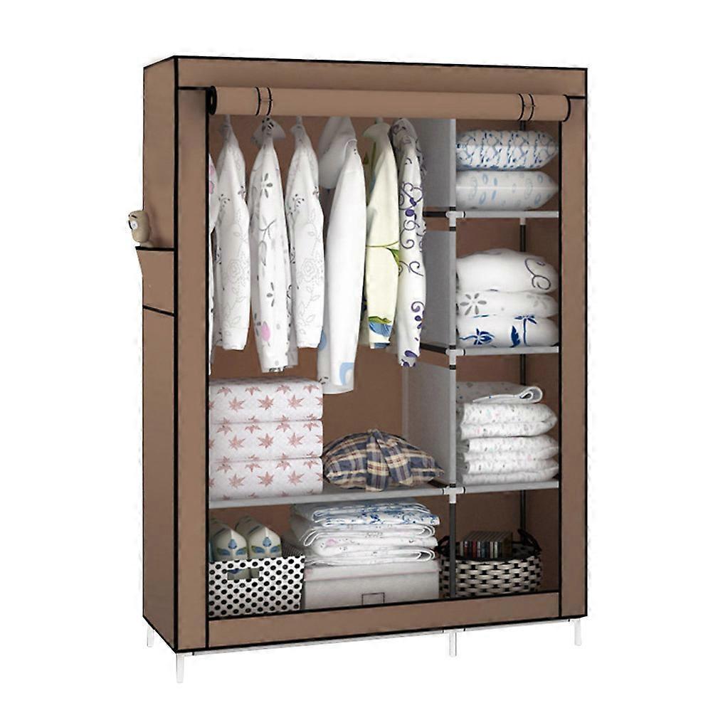 Coffee Fabric Closet Organizer with Metal Shelves for Storage Sturdy Dustproof and Movable 47.2x19.7x70.9 Inches