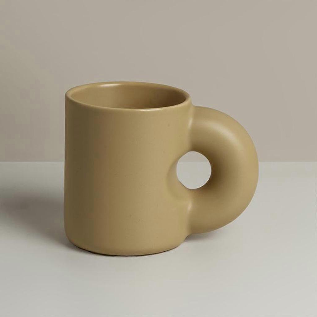 Coffee Mugs Fat Handle Coffee Mug Nordic Home Decor Handmade Art Tea Mug for Men, Women - Brown 320ml