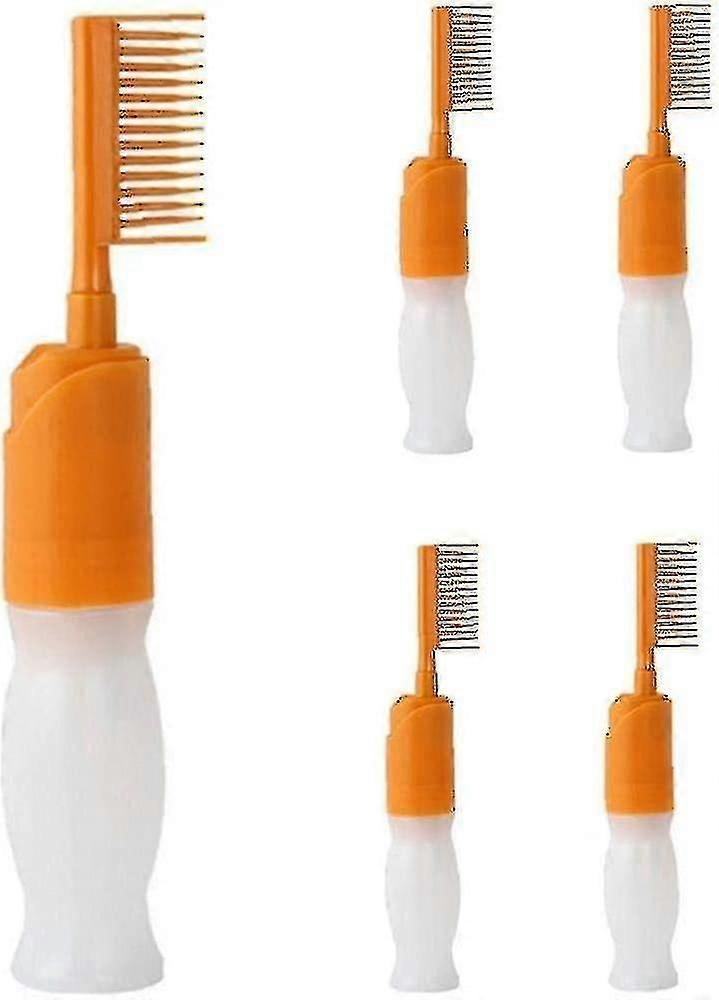 Hair Dye Bottle with Comb Applicator Salon Hair Coloring Tool (5pcs, Orange-White)