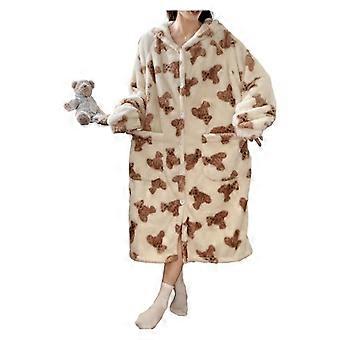 Coral Fleece Pajamas Womens Bear Pajamas Long Flannel Home Clothes Set