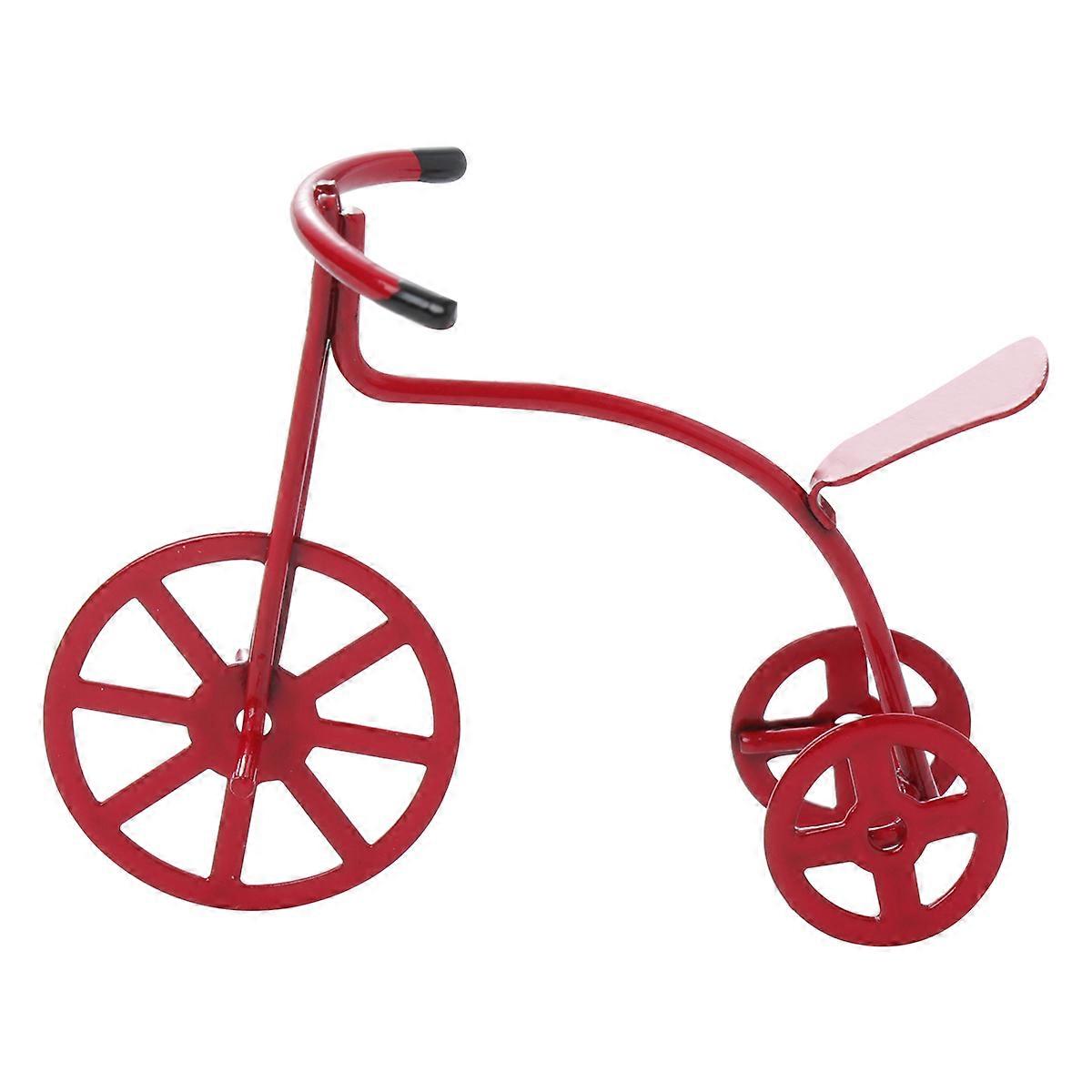 Biking Accessories Red Metal Bike Garden Accessory Small Doll House Toys Mini Tricycle Model Mini House Adornment