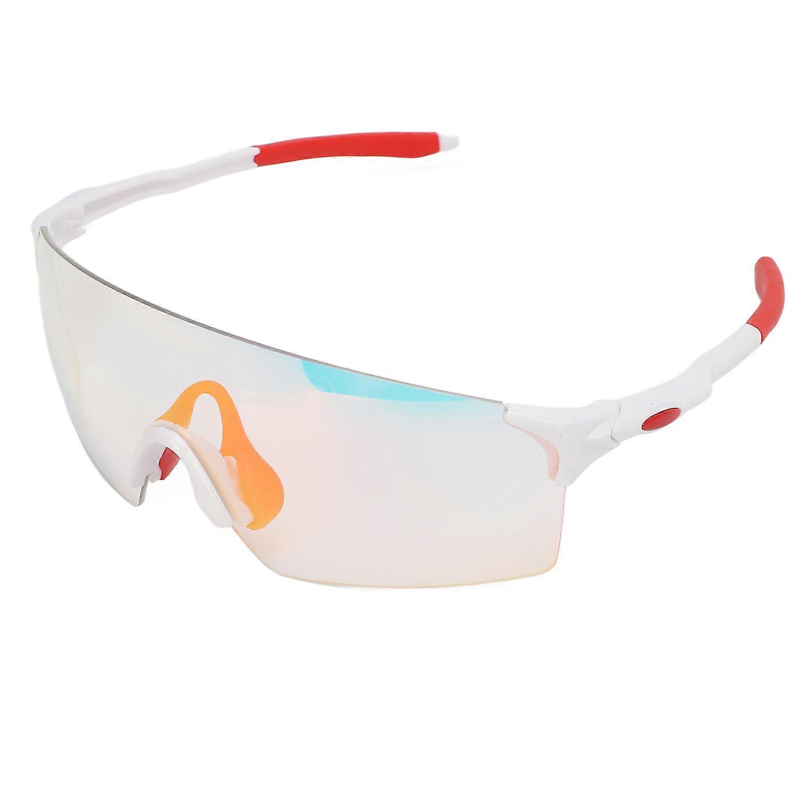 Cycling Glasses Color Changing UV Proof Windproof Impact Resistant Outdoor Sports Glasses for Running Riding Hiking White Red Frame