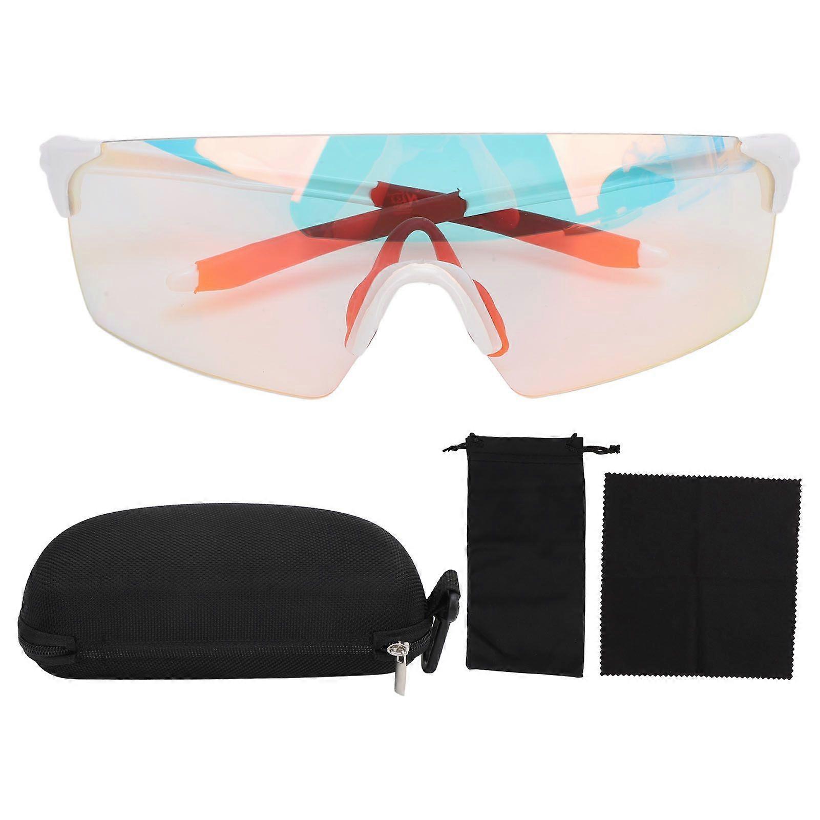 Cycling Glasses Color Changing UV Proof Windproof Impact Resistant Outdoor Sports Glasses for Running Riding Hiking White Red Frame