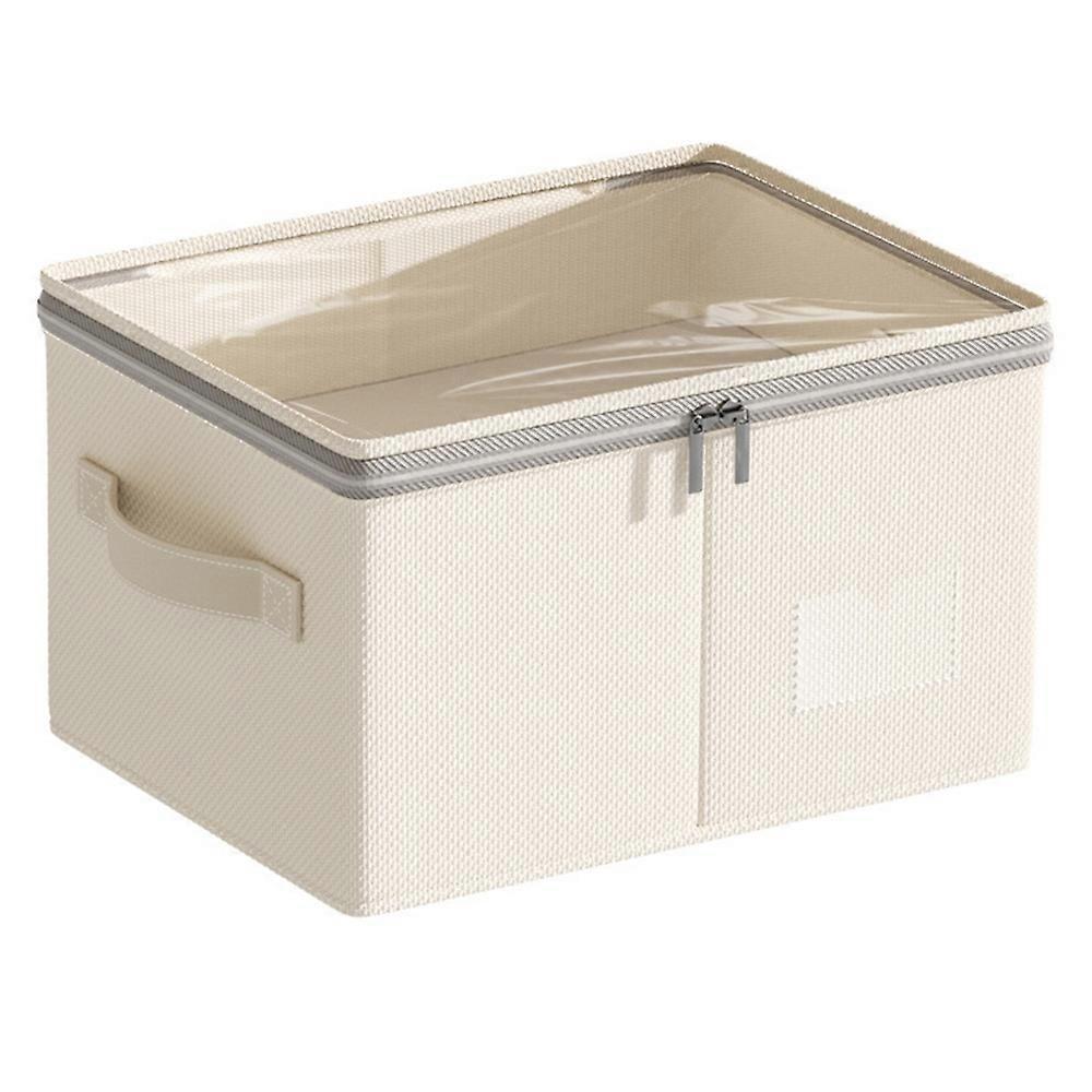 Size S Cotton Linen Foldable Storage Box with Transparent Top for Bedroom Clothes Organizer Containe