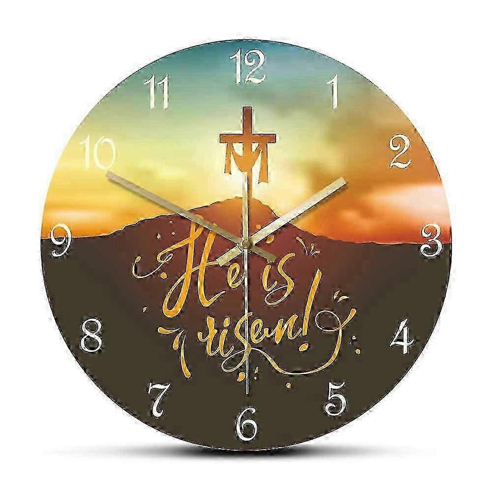 Silent Christian Wall Clock 12 Inch Decorative Jesus Cross Design for Easter Home Decor and Religious Gifts