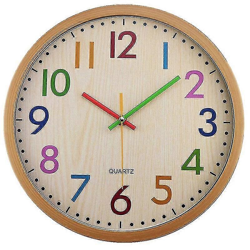 Silent Non Ticking Kids Wall Clock, Battery Operated Colorful Decorative Clock For Children Nursery