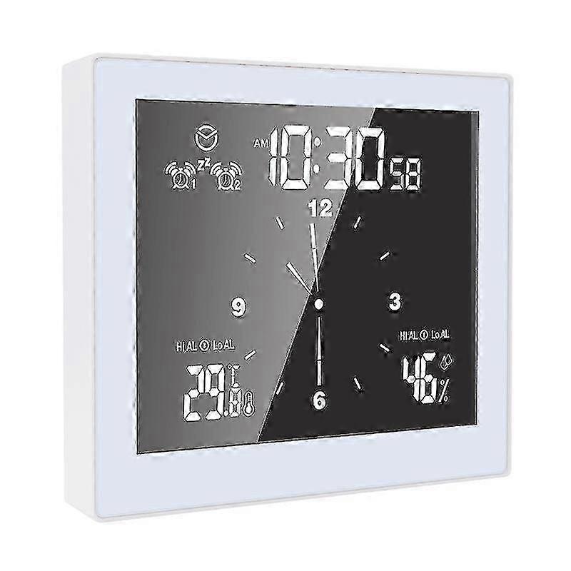 Touch Screen Clock with Suction Cup Thermohygrometer for Home & Office (White)