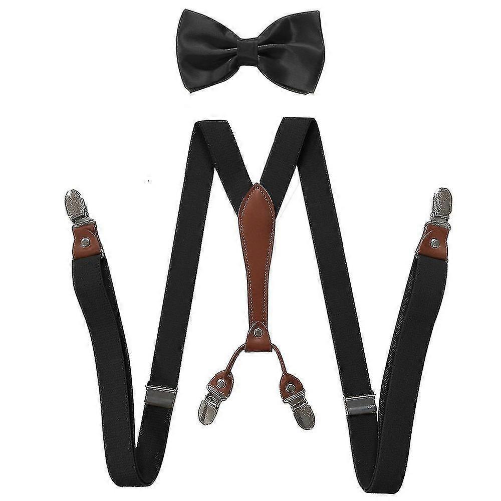 Suspenders Bowtie Set Men's Elastic X Band Suspender + Bowtie For WeddingMAKE HEADS TURN IN FORMAL EVENTS: Premium Suspender + Bow Tie Set in will underline your chic looks on your party, prom, wedding, graduation, photo shooting sessions, or complement your costume on all special events and celebrations, adding a unique air of style to your formal, sleek looksTHE ADJUSTABLE SUSPENDERS: Premium manufacture, these 1 wide ADJUSTABLE suspenders with the 4 STURDY CLIPS will hold your pants tightly, complementing your formal attire with original classic air. They ensure comfortable and convenient use, without hurting your shoulders or slipping over your shirt.DURABLE + LONG-LASTING: Ultra FLEXIBLE to follow your teenaged boys development up to manhood, our elastic suspenders will NOT FADE and NOT SHRINK after countless washes, making a heavy-use mens accessory with guaranteed longevity. The teethed metal cilps are sturdy enough for tight grip on your pants, ensuring reliable hold and premium comfort.THE PRE-TIED BOW TIE: Our PRE-TIED Bow Tie is perfect for all teenaged boys or adults on all formal occasions. Eye-catching and elegant, it is a standard one size fits all accessory with adjustable straps to fit all neck sizes, adding the final touch of class to all your formal appearances.AN EXCELLENT GIFT SET: Elegant, durable and comfortable, our Suspenders + Bow Tie set will make the perfect gift to the college student, the bridegroom, the graduating student, the performing musician.Offer it to your friend, brother, father or co-worker on their Graduation Day, Fathers Day, Christmas or on their birthday and have the lucky recipient thankful for your excellent taste.Specification:Material: Polyester Yarn + ElasticSize: One SizePackage Included:1Pc Suspenders + 1Pc BowtieNote:1. Due to the different monitor and lighting effect, the actual color of the item may be slightly different from the color shown on the pictures.2. Please allow 1-3cm error due to manual measurement. (1 inch = 2.54 cm)Thanks for your support :)