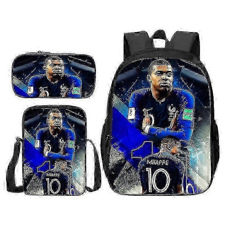 Soccer star Mbappe printed schoolbag or meal bag or pen bag or three-piece backpack for students 2025