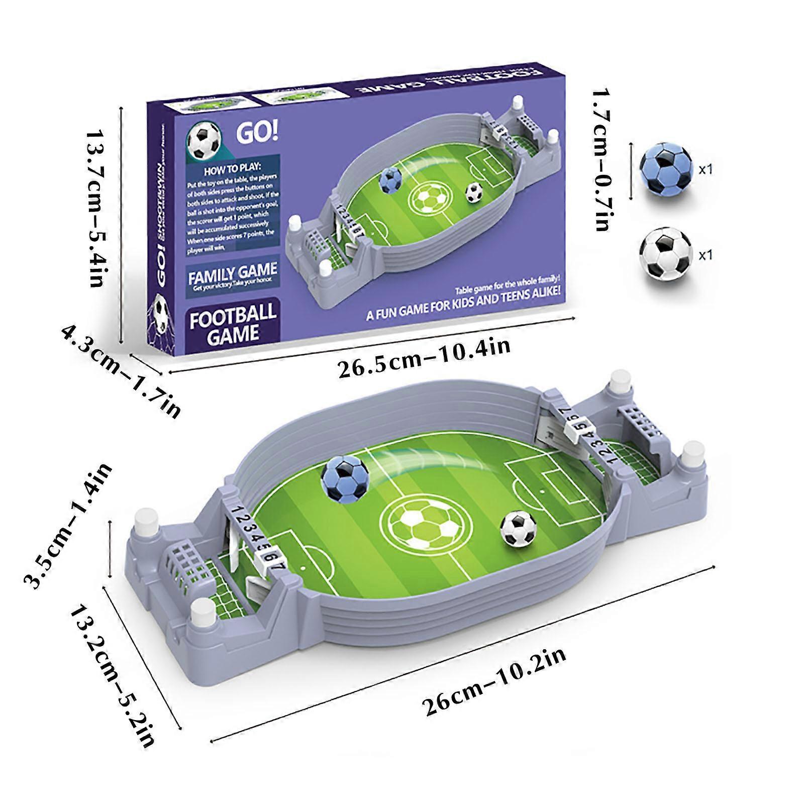 Football Table Interactive Game Tabletop Football Board Game Football Field Toy Two-person Interactive Catapult Game Features: Mini table football game --- The mini table football game is a very interesting game for 2 players. Every football online party has a scorekeeper, which can be adjusted manually to enjoy a good family and party. Parent-child interactive toys---Children can play this game with their parents to strengthen their communication and interaction. Children can also play games with their, which can help them get along more harmoniously and enhance their sense of competition. Portable and small size --- This portable mini foosball suit is an ideal space-saving size, almost any surface: desktop, table top, floor, terrace Safe material --- The tabletop football toy is made of ABS plastic, environmentally friendly, and safe to play. , clear and beautiful appearance, it is the choice for children's toys. The gift --- This beautiful mini football toy can be used for boys and girls, children and adults, as well as everyone in the family, at home, office or party. The birthdays, children's day, Christmas, etc. Product details: Include: 1x football table 2x MINI football