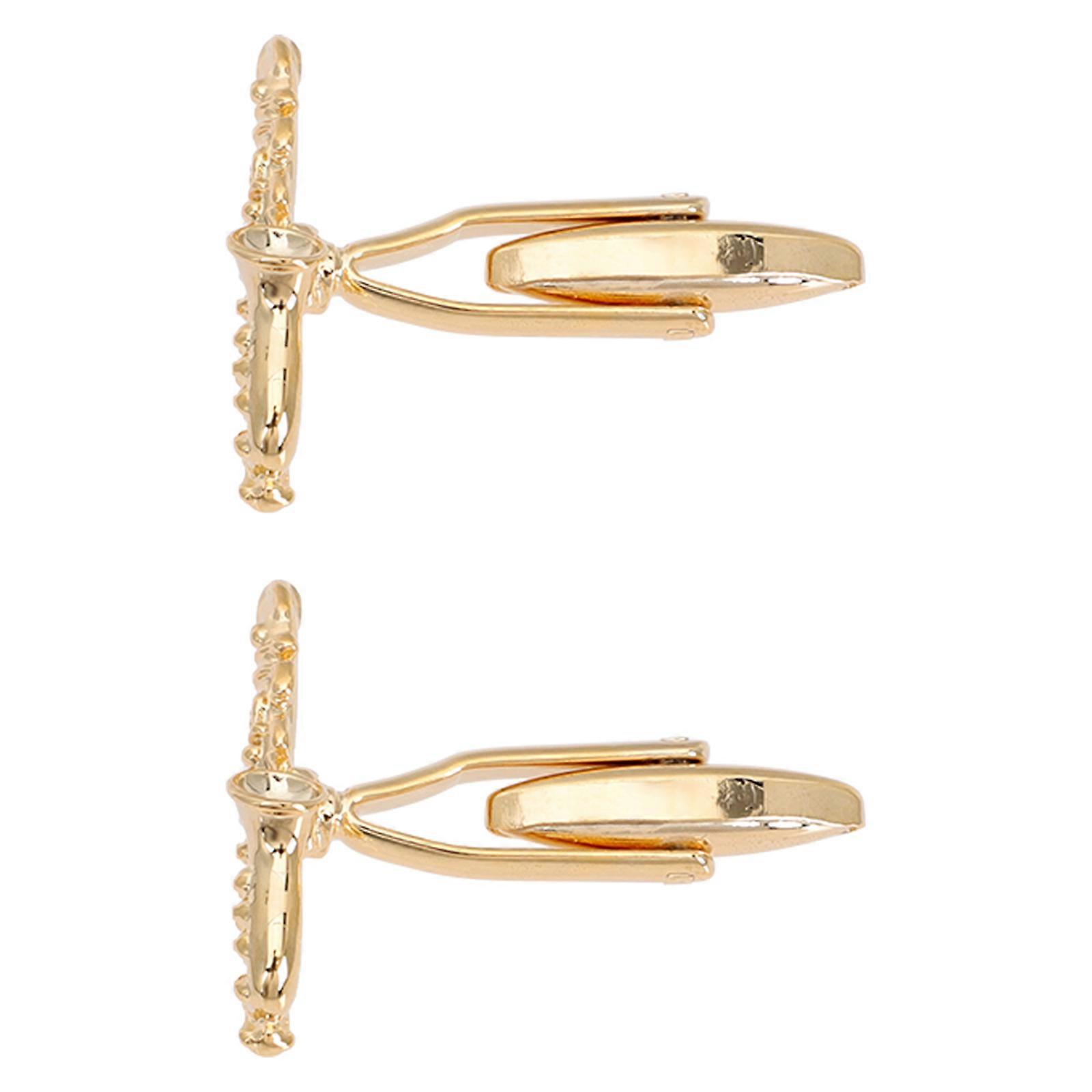 Saxophone Shaped Cufflinks For Business Meetings Weddings Anniversary Golden 2.7x2.4cm Fashion Style 1 Pair
