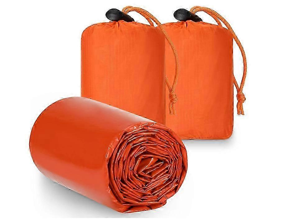 Survival Sleeping Bag, 2pcs Emergency Bivvy Bag, Lightweight Waterproof Emergency Thermal Blankets PE Aluminum Film Survival Camping Gear(orange color